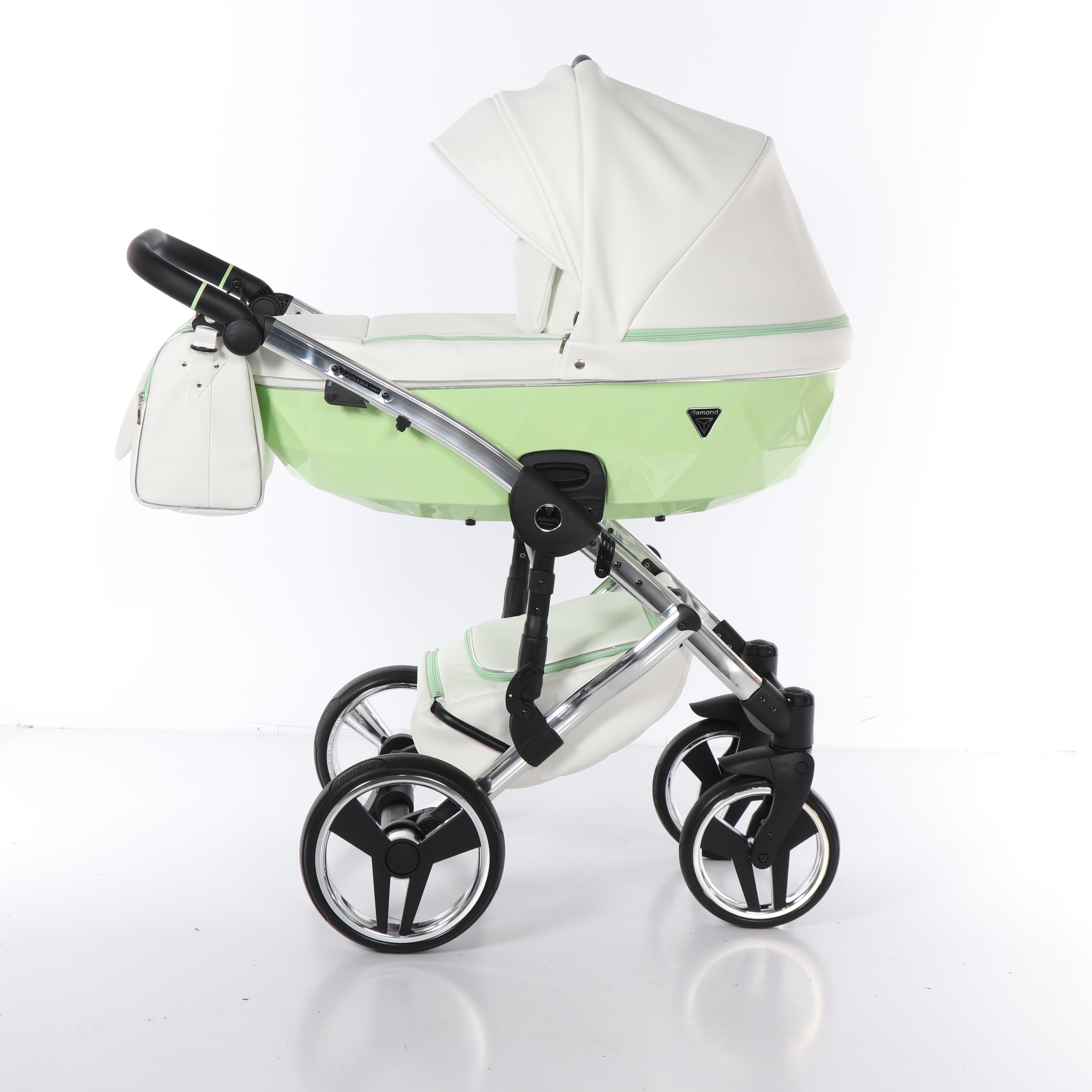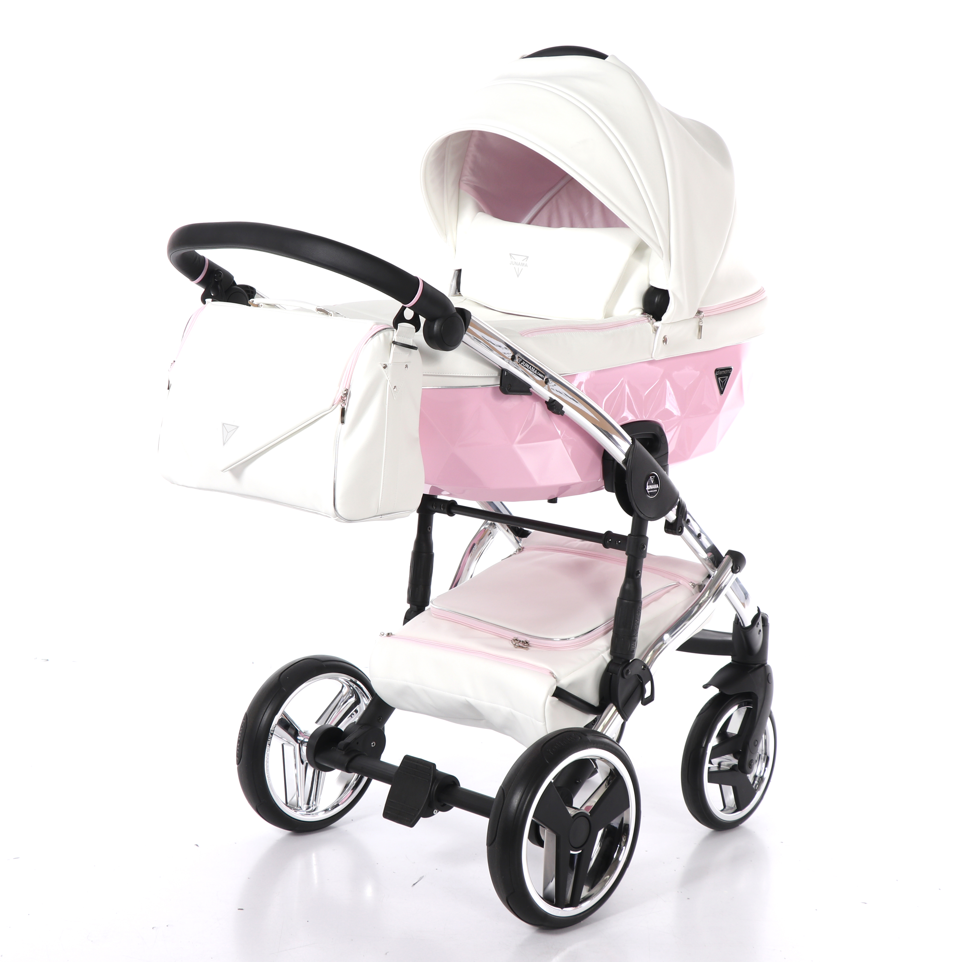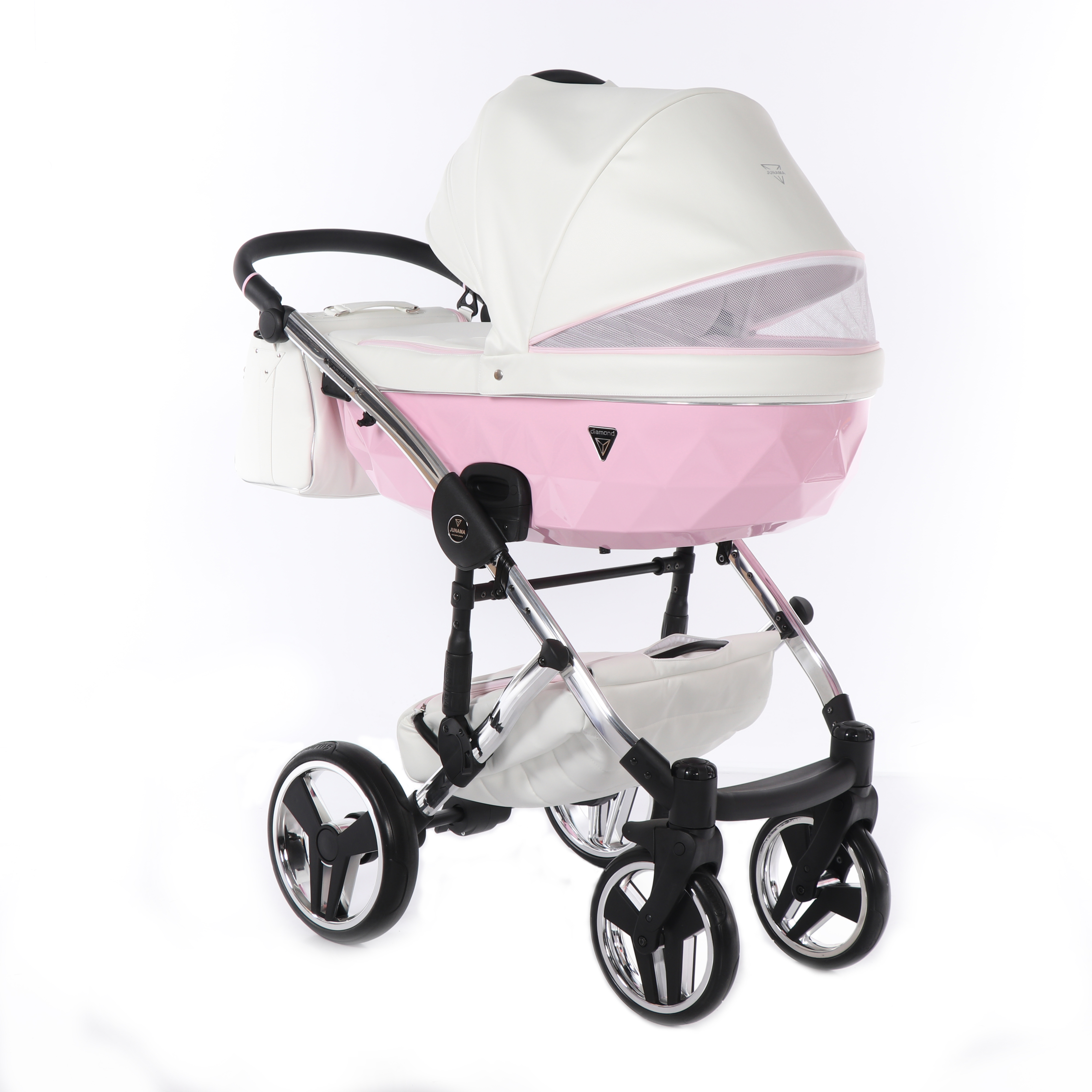 Детская коляска Junama Candy 2 в 1 (Юнама Кенди ) - новинка 2020-2021 года. Роскошная коляска с уникальным дизайном и нежным сочетанием белоснежной рамы с белой или черной кожей. Низ люльки выполнен в виде драгоценного камня и имеет нежные "карамельные" расцветки, которые ни кого не оставят равнодушным.