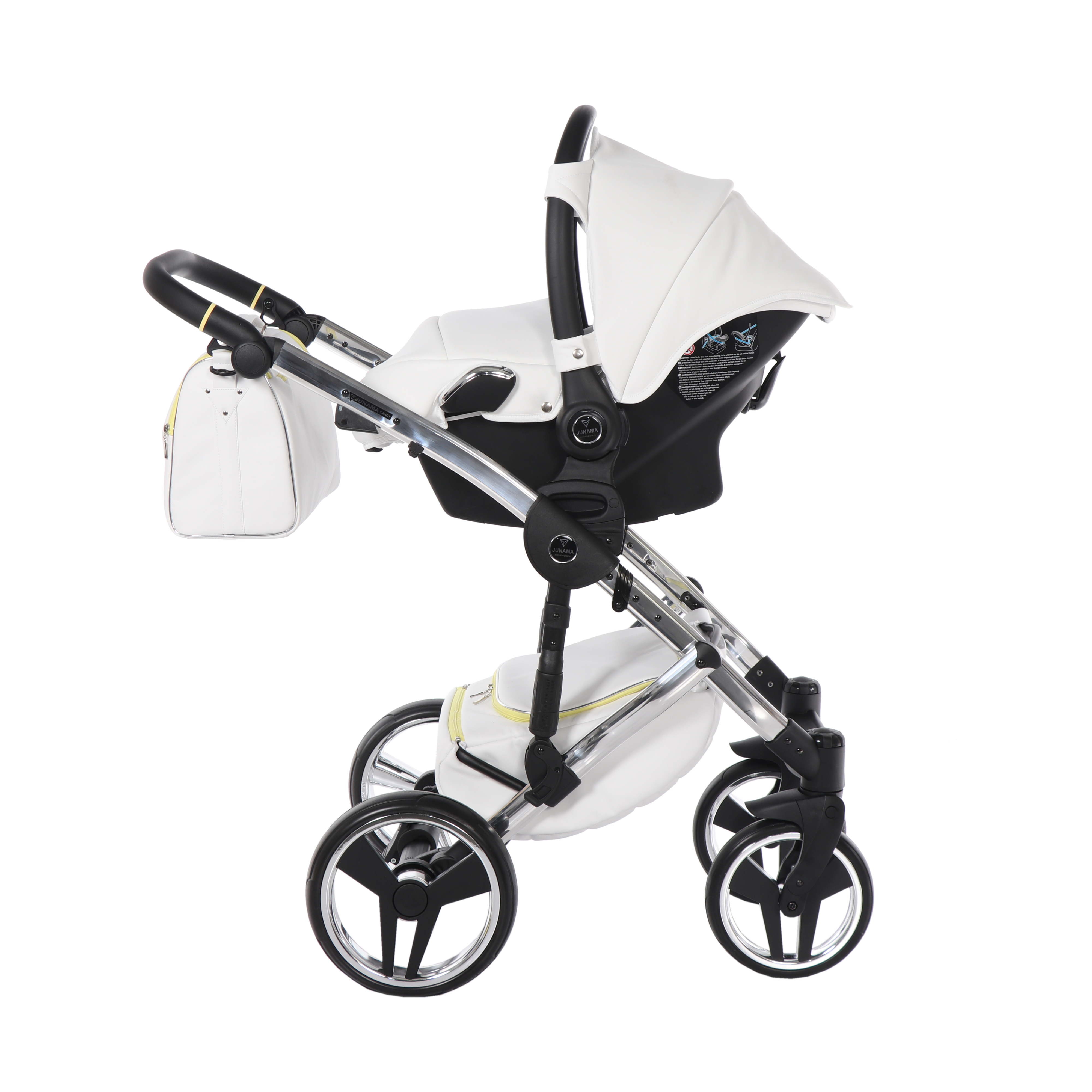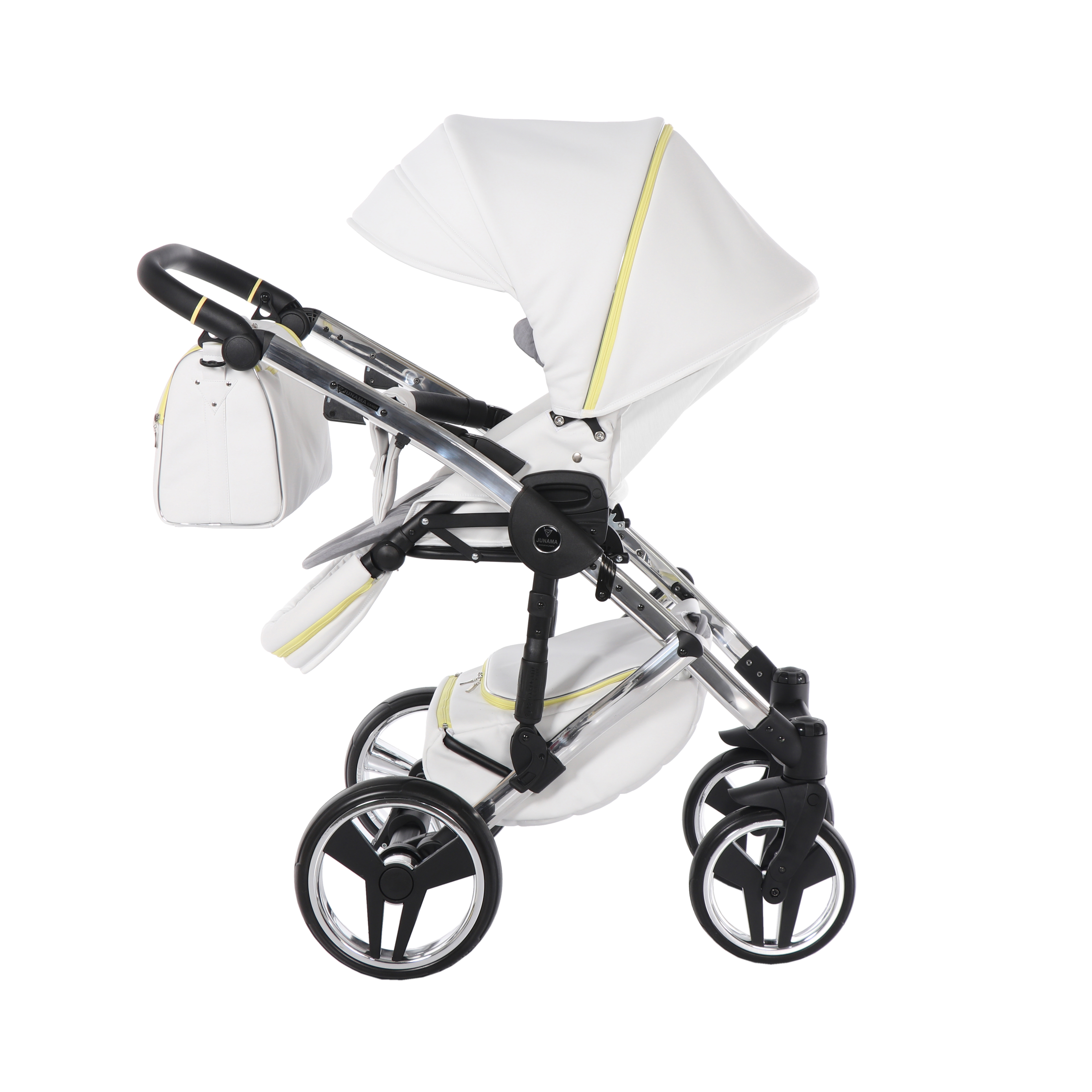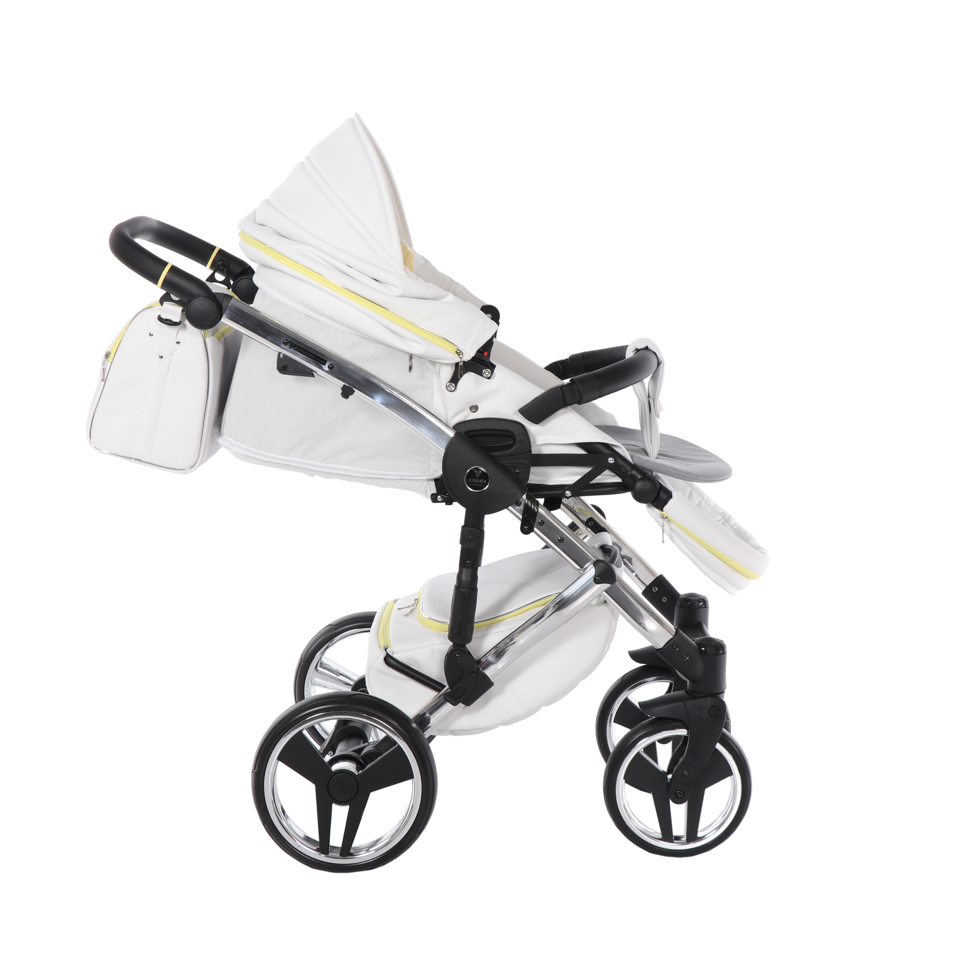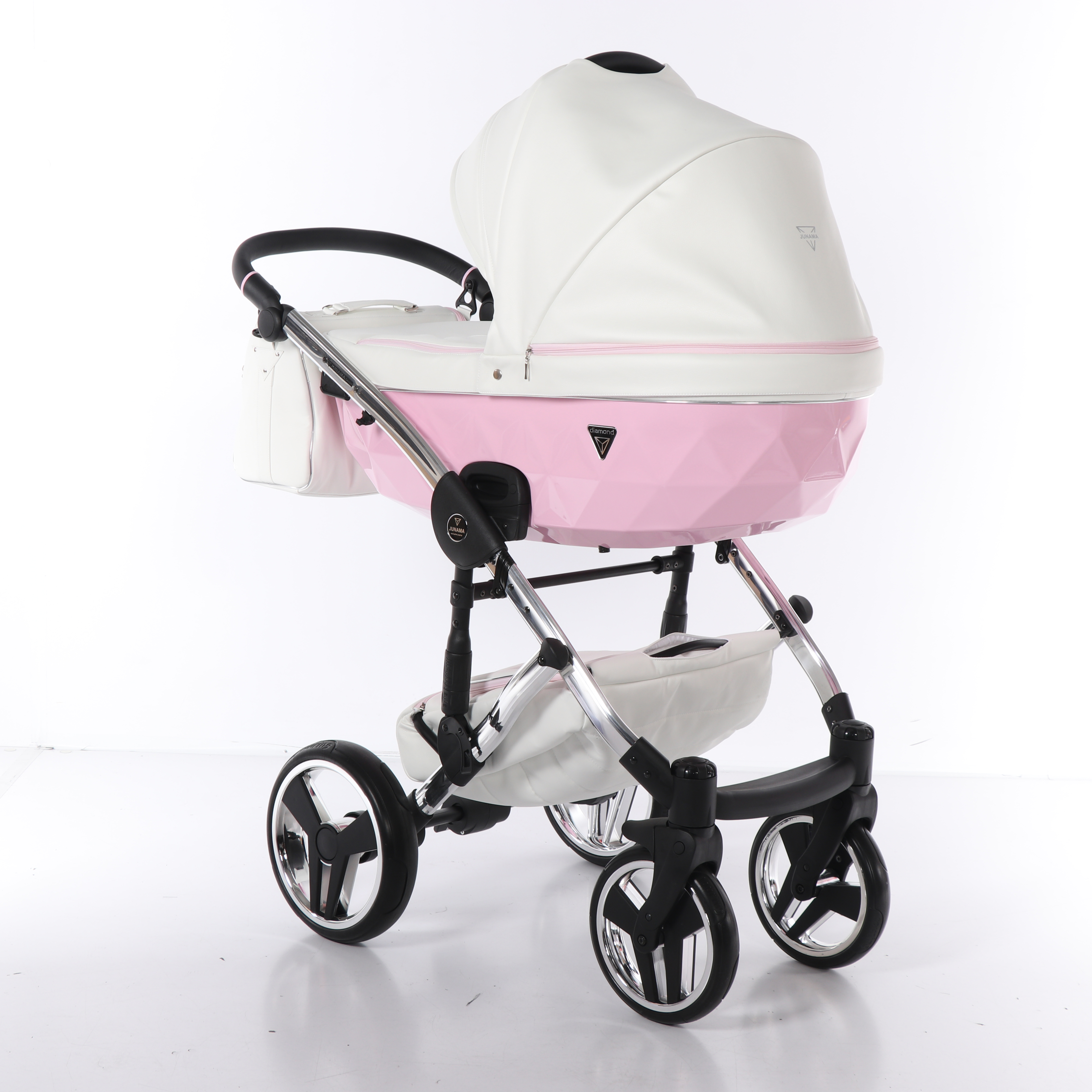 Детская коляска Junama Candy 2 в 1 (Юнама Кенди ) - новинка 2020-2021 года. Роскошная коляска с уникальным дизайном и нежным сочетанием белоснежной рамы с белой или черной кожей. Низ люльки выполнен в виде драгоценного камня и имеет нежные "карамельные" расцветки, которые ни кого не оставят равнодушным.