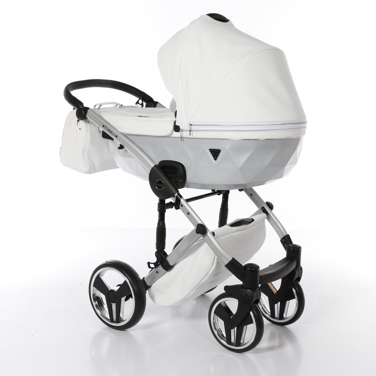 Детская коляска JUNAMA MIRROR SATIN (Юнама миррор сатин) - эксклюзивная коляска для ребенка с рождения до 3-4 лет. Уникальная обивка из премиальных тканей, дизайнерская люлька с огранкой как у драгоценного камня. Каждая деталь коляски выполнена с любовь и заботой о малыше. Высококачественные материалы подарят вам приятные прогулки и долгий срок пользования моделью.