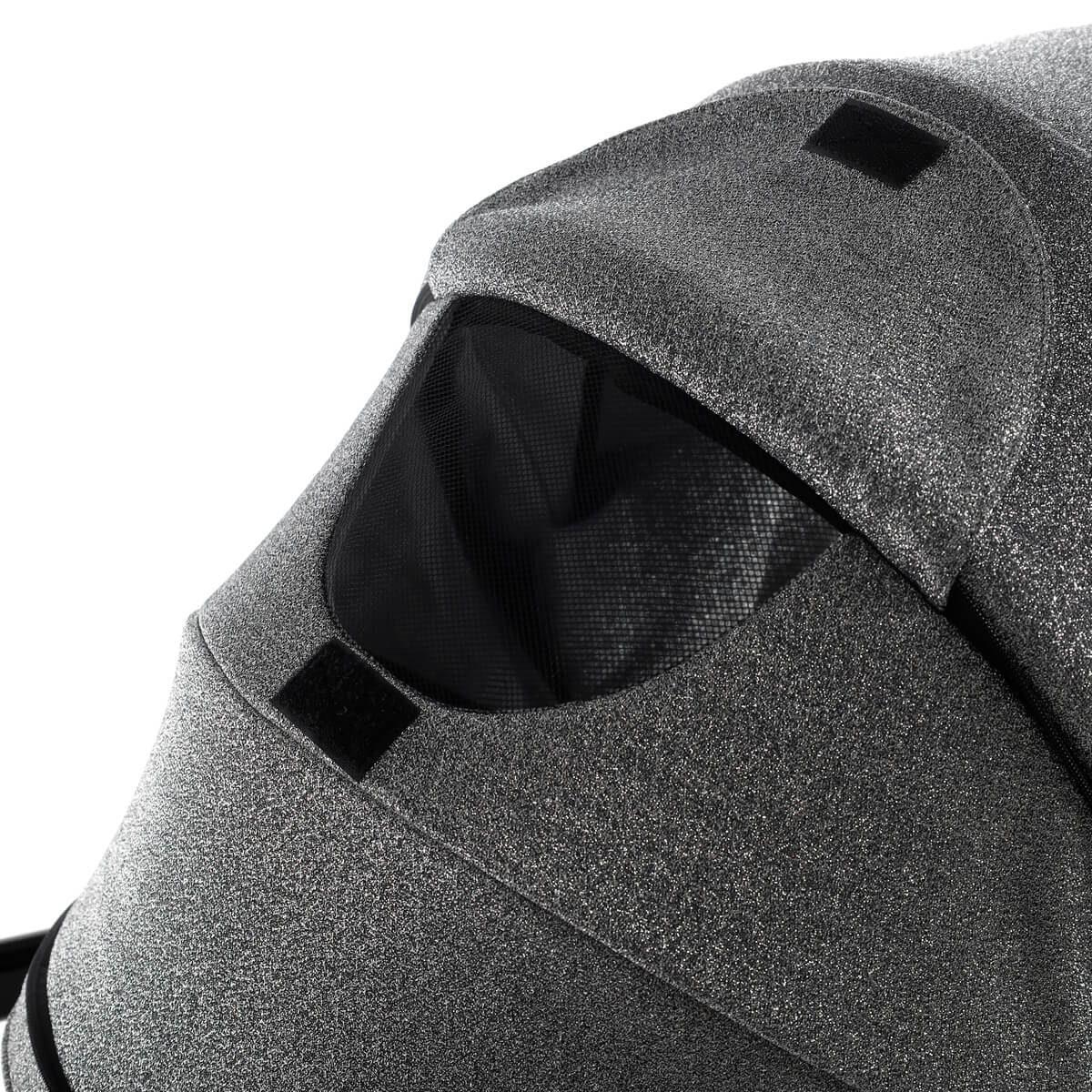 - Бесшумно регулируемый капюшон с вентиляцией;