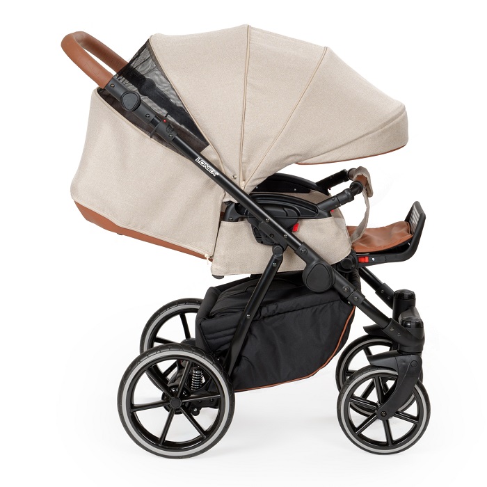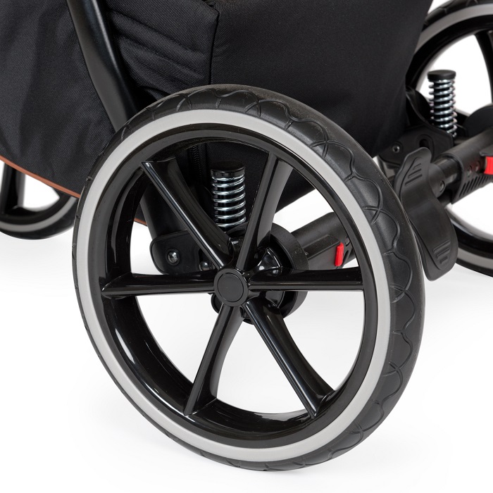 Данная коляска очень аккуратная и компактная, с шириной колесной базы всего 59 см. Она легко заедет в узкий лифт и развернется в ограниченном пространстве. Легкое и удобное управление за счет передних поворотных колес и регулируемой по высоте ручки. Большим плюсом коляски являются современные гелевые колеса. Они отличаются прекрасной амортизацией, легкостью и практичностью. Не сдуваются и не боятся проколов. Улучшенная амортизация «сглаживает» все неровности дороги. Мягкая подвеска помогает маме укачать малыша во время прогулки.