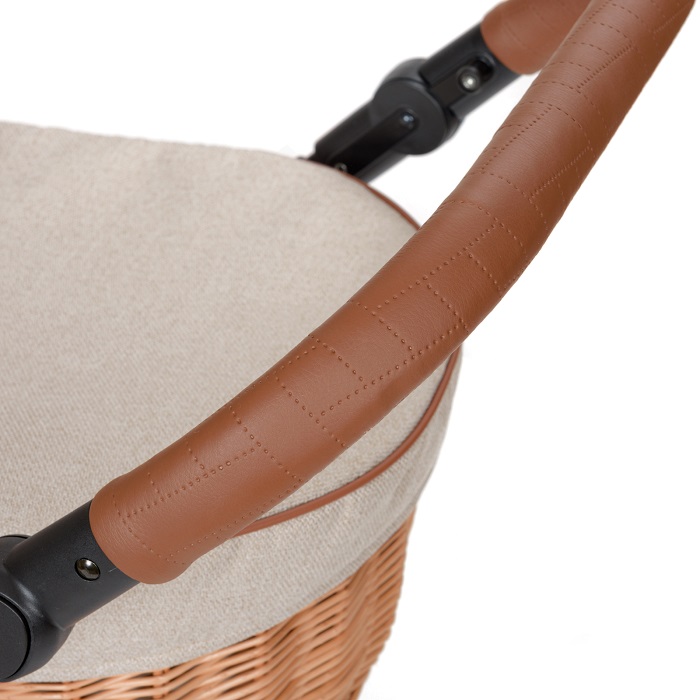 Теплая люлька 85х38 см выполнена из натуральной лозы. Внутри люльки предусмотрен теплый хлопковый чехол, который снимается для стирки и мягкий матрасик. Накидка на ножки имеет высокий откидной ветровик с большим смотровым окошком. Тканевая обивка выполнена из водоотталкивающих материалов и с защитой от УФ лучей. Большой капюшон, в сочетании с накидной на ножки, практически полностью закрывает ребенка от ветра или небольшого дождя.