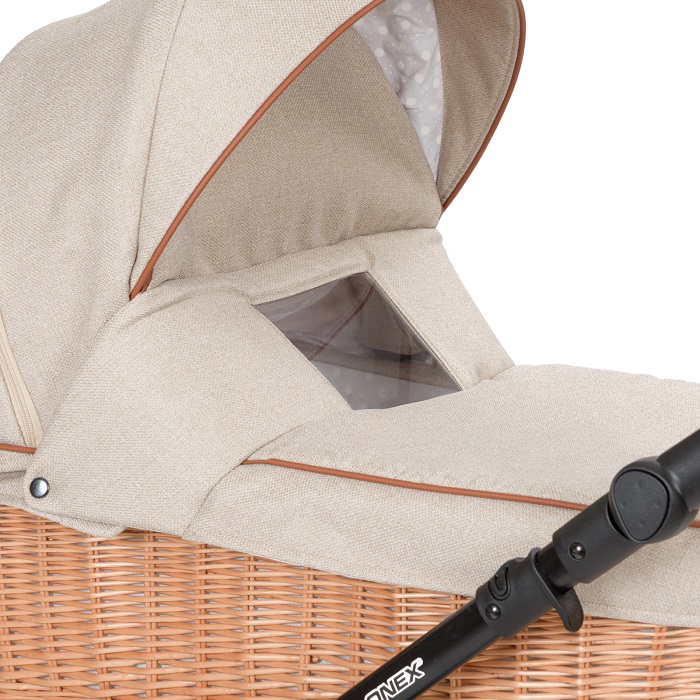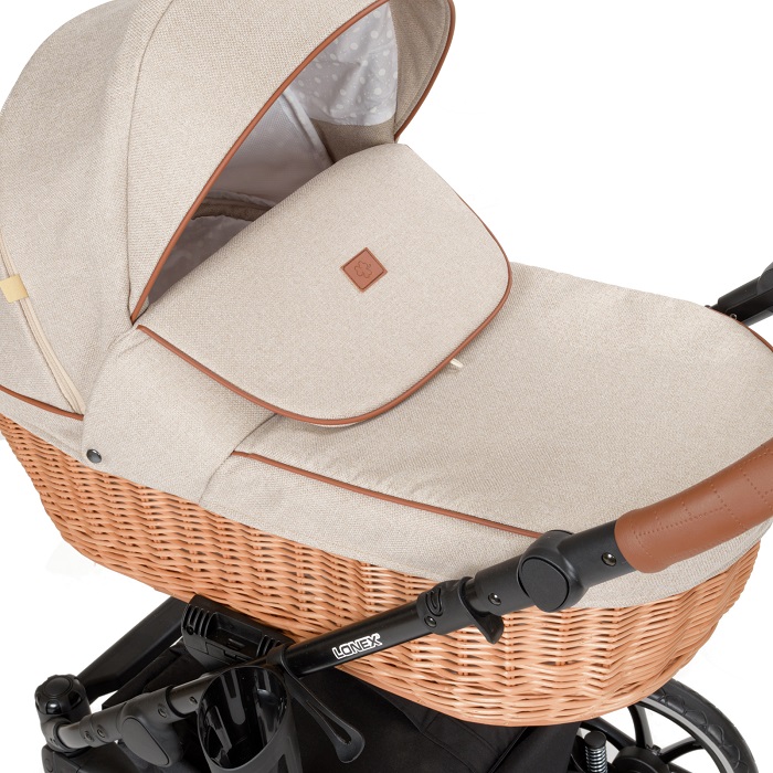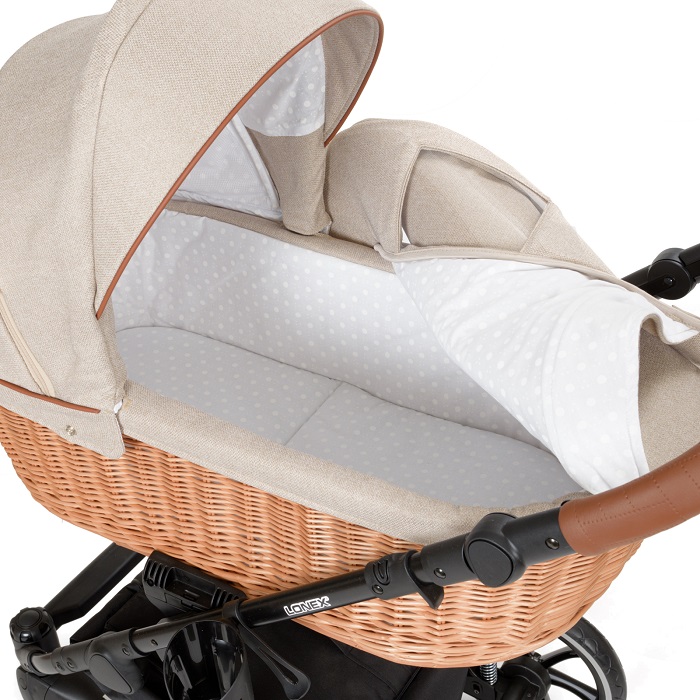 Коляска Lonex Pax 2 в 1 (Лонекс пакс) - стильная и комфортная коляска с большой люлькой из натуральной лозы. В этой коляске сочетается высокий функционал и ретро стиль, натуральные материалы и современные технологии. Коляска предназначена для ребенка с рождения до 3 лет и состоит из легкого алюминиевого шасси, люльки для новорожденного и прогулочного блока.