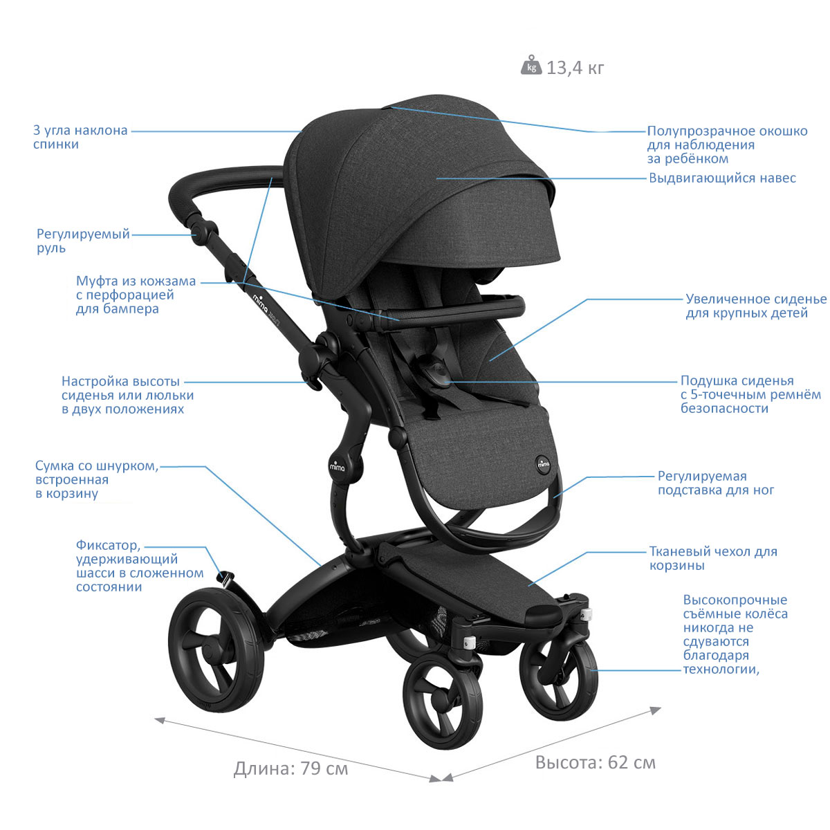Mima Xari Sport - это коляска премиум класса, созданная с учетом потребностей современных родителей и имеющая очень большой функционал и удобные регулировки.