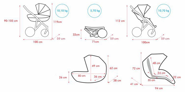 А теперь о весе! Коляски компании Mirelo отличаются очень легким весом. Вес рамы всего 5,7 кг. Вес коляски с люлькой всего 10,10 кг., а с прогулочным блоком 10,70 кг. У вас не возникнет проблем с заездом коляски по пандусам, на бордюры и тд. потому что действительно легкая коляска прекрасно управляется и не создаст дополнительных трудностей во время прогулки. Так же рама компактно складывается и не займет много места в машине, что позволит легко ездить с малышом по делам, в поликлиники, магазины или в парки далеко от дома. Для безопасных поездок в машине предусмотрено автокресло, которое устанавливается на раму коляски.