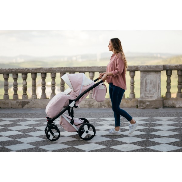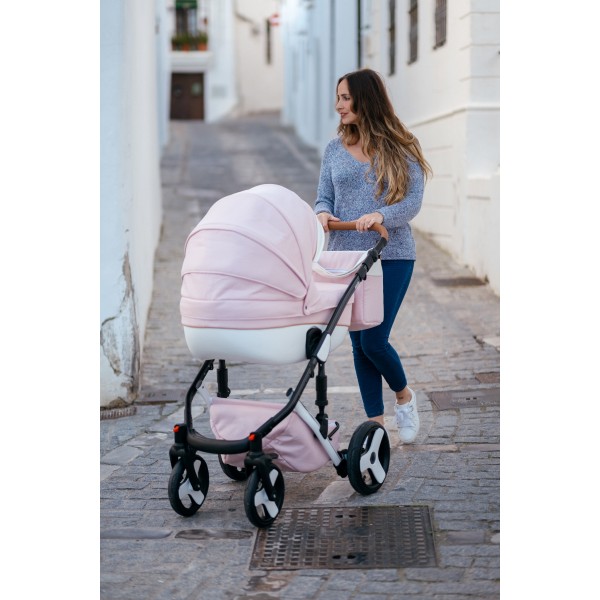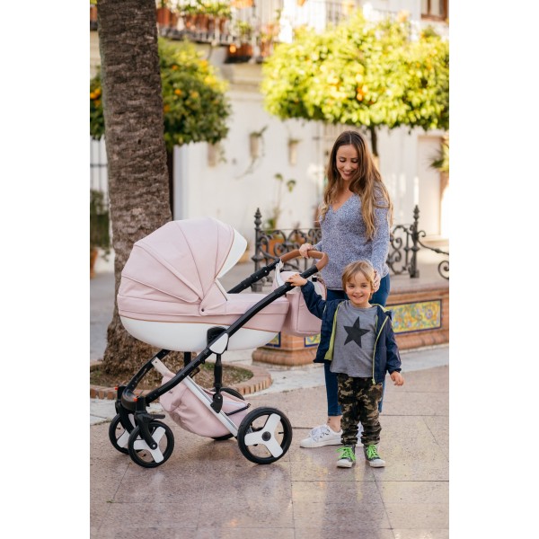 Детская коляска Mirelo Venezia Eco (Мирело Венеция Эко) - стильная и яркая коляска, выполненная полностью из эко кожи для ребенка с рождения до 3-4 лет. У модели дюралюминиевое шасси, которое отличается надежностью, долговечностью и супер легким весом. Вес с люлькой всего 11,8 кг, а с прогулочным блоком 11,5 кг. Большие колеса и 6 амортизаторов с возможностью регулировки подвески, делают прогулки комфортными, а сон ребенка более крепким. При этом рама складывается компактно, все колеса снимаются, а модульные блоки легко снимать и ставить на раму.