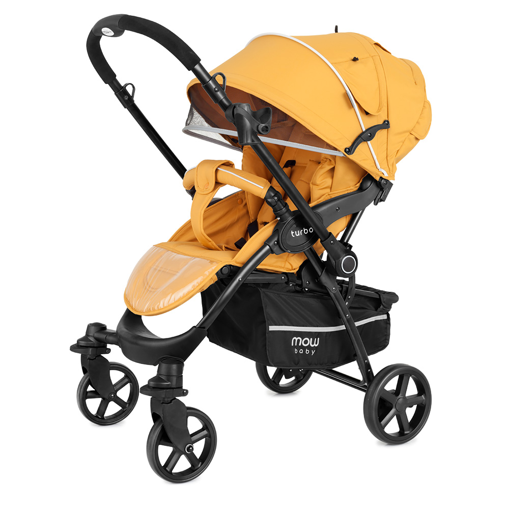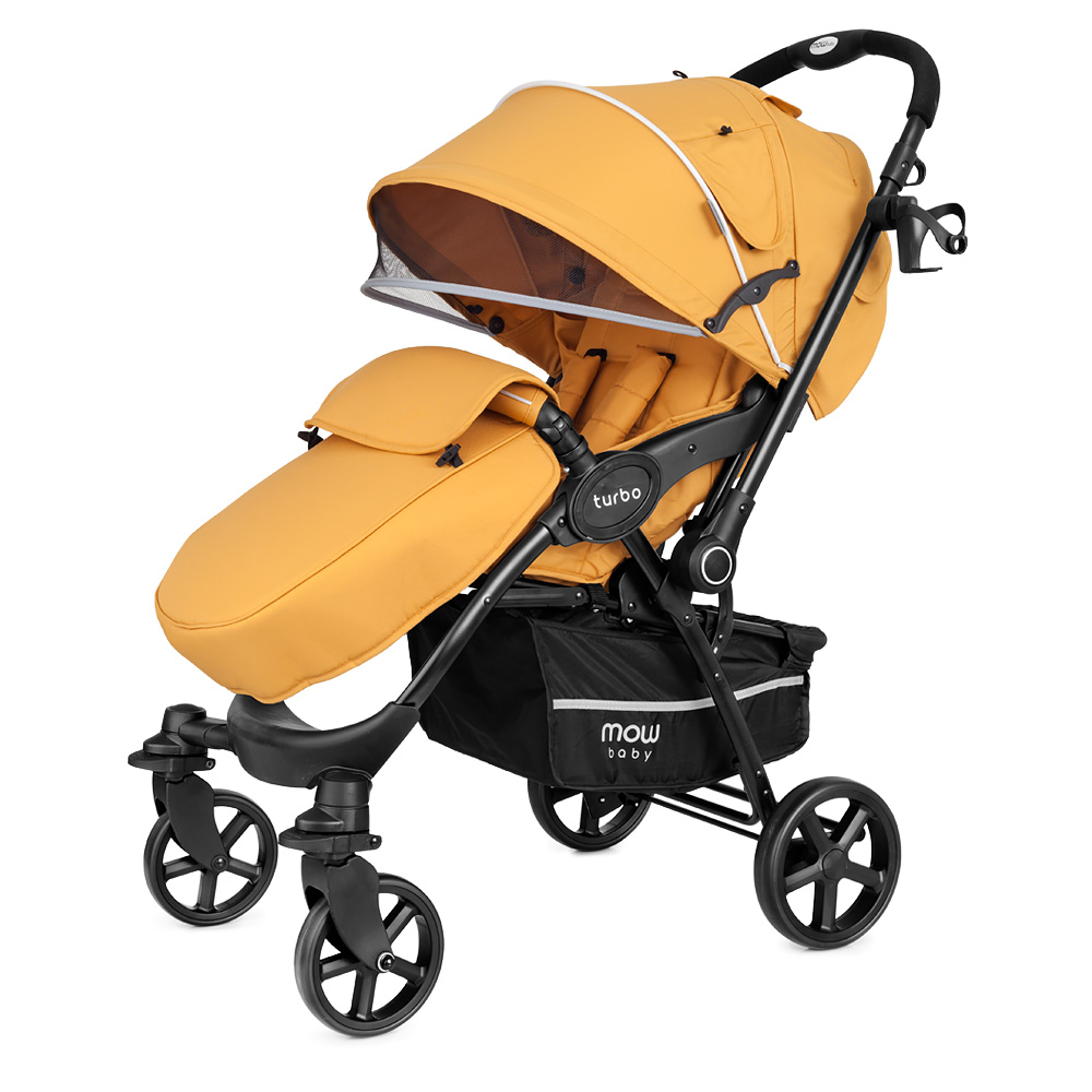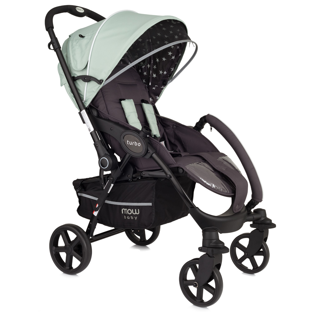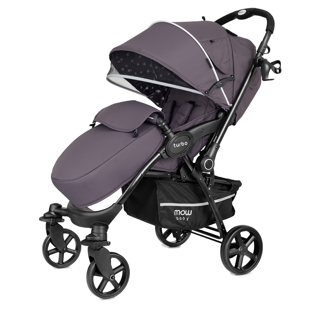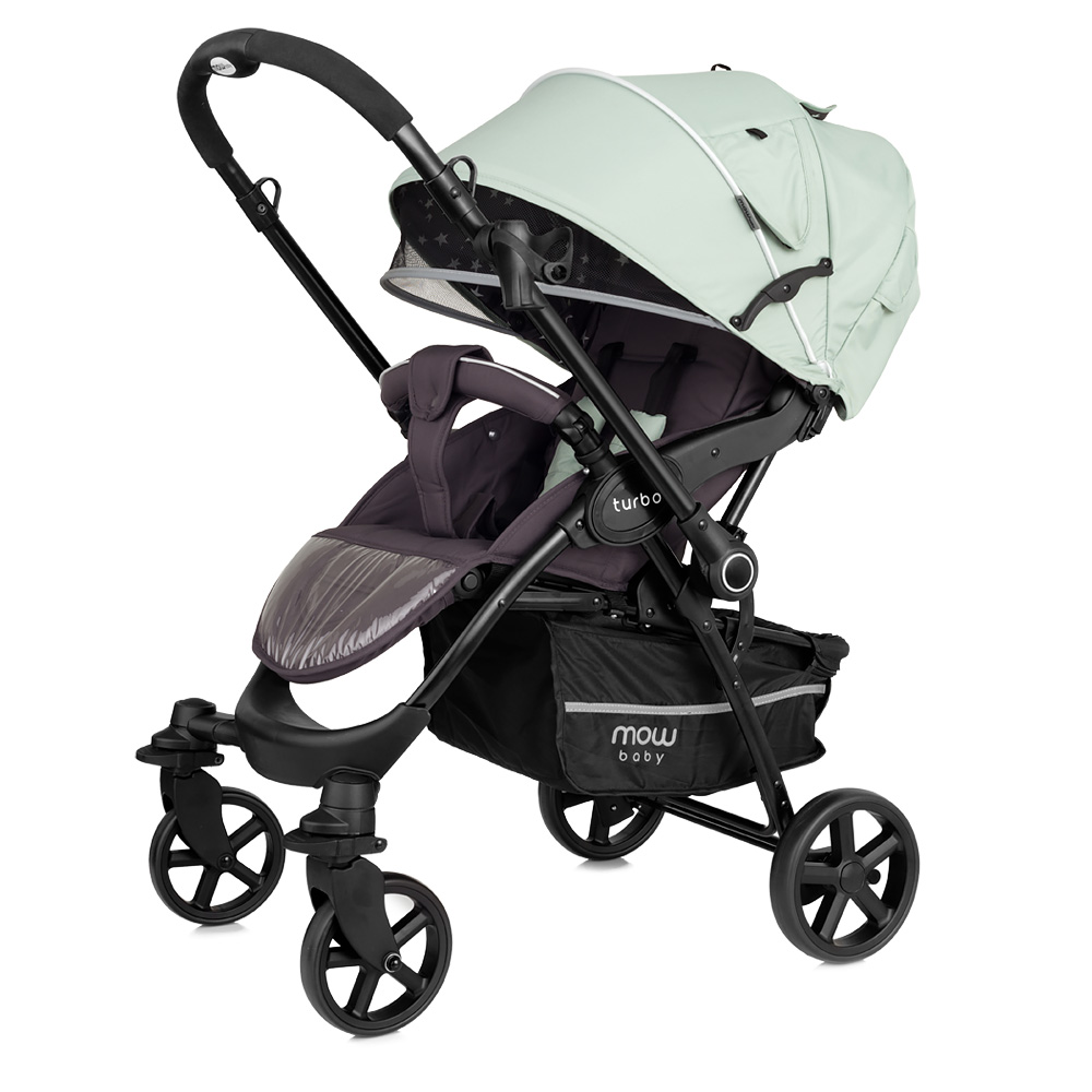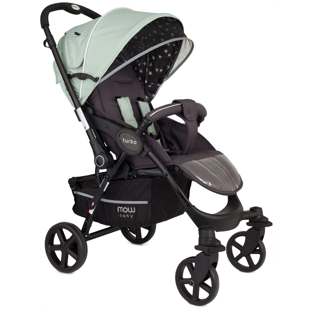 Коляска Mowbaby Turbo (Мувбеби турбо) - качественная коляска для ребенка от 6 месяцев с перекидной ручкой. Идеальный вариант, если малышу еще нет года и он не готов гулять и не видеть родителей. Большой, роскошный капюшон закроет от любой непогоды, ветра или снега. При этом в капюшоне есть удобные вентиляционные окошки и дополнительный козырек от солнышка. Просторное сидение с регулируемой жесткой спинкой. Спинка регулируется механически, без ремешков, от сидячего до почти горизонтального положения. Подножка поднимается, увеличивая спальное место для ребенка, и покрыта удобной защитой от грязи. Несомненным плюсом модели являются большие всепроходимые колеса, передние из которых могут быть поворотными при необходимости. Коляска весит всего 9 кг, и быстро складывается одной рукой. Теперь любая прогулка будет проходить удобно и спокойно, а вам не придется переживать за ваш транспорт.