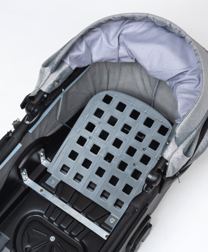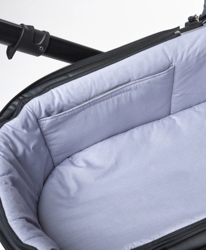 - Просторная люлька из пластика, обтянутая качественной эко кожей.