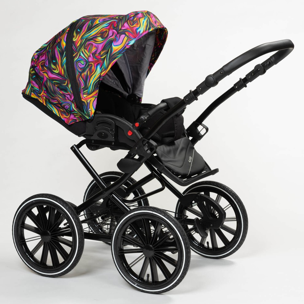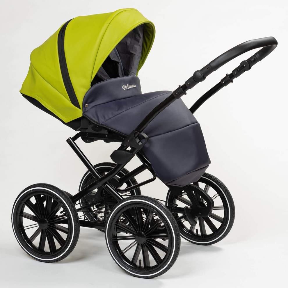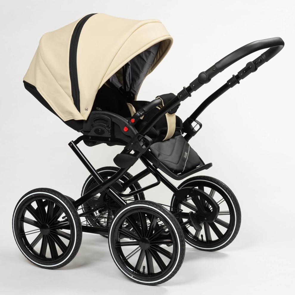 Коляска оснащена большими надувными колесами и мягкой пружинной амортизацией. Коляска будет легко справляться со всеми неровностями дороги, бережно охраняя сон ребенка. Несмотря на то, что колеса неповоротные коляска очень удобно управляется.