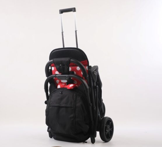 Модель складывается одной рукой до компактных размеров. Для удобства транспортировки выдвигается специальная ручка как у чемодана, что позволит легко катить коляску одной рукой, а второй, например, держать ребенка. Чтобы при транспортировке сохранить коляску от загрязнений предусмотрен специальный чехол.