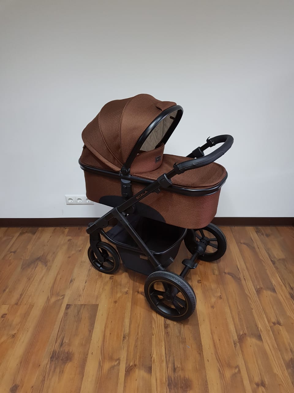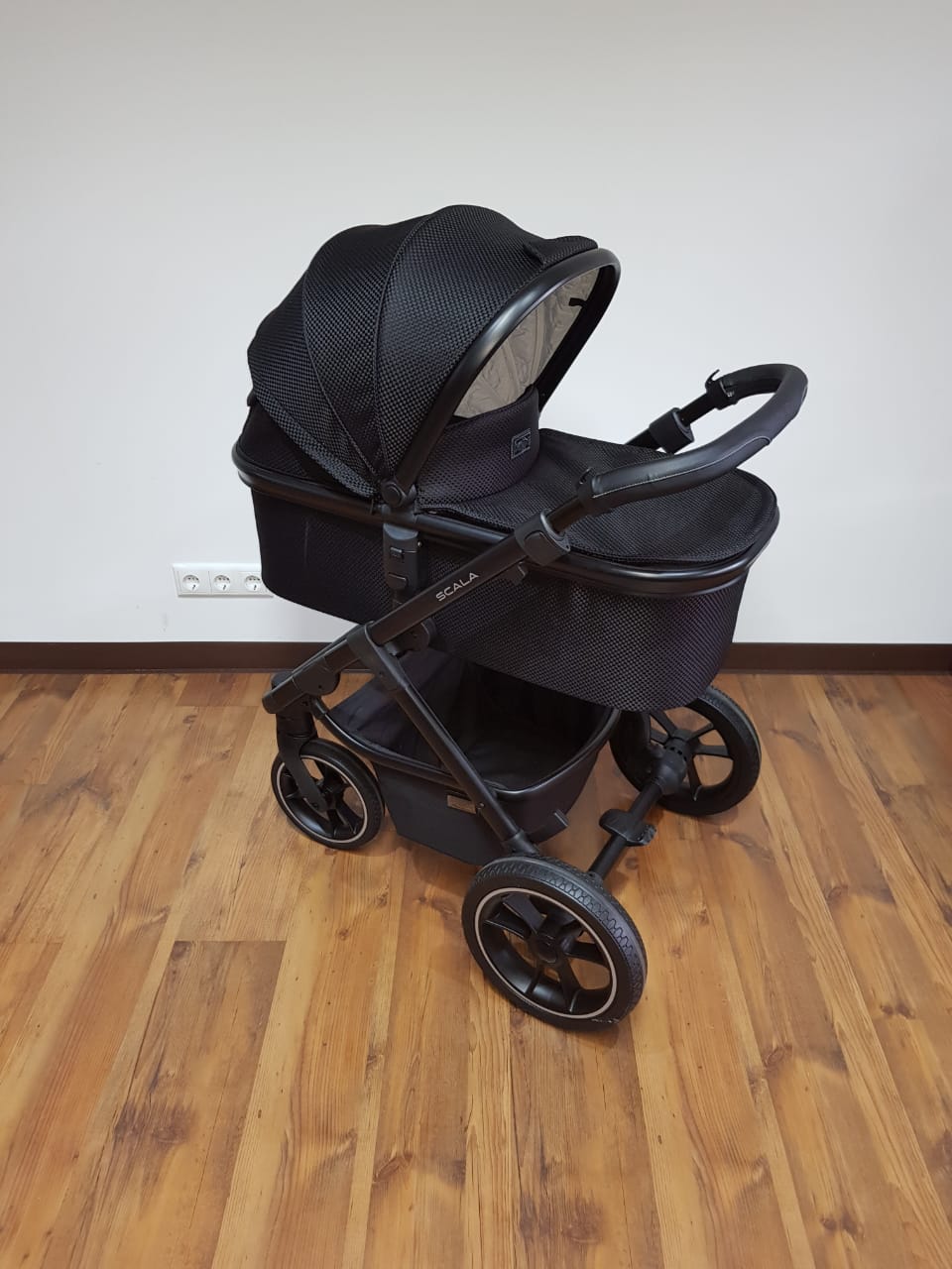 Детская коляска Moon Scala 2 в 1 (мун скала)- немецкая коляска для ребенка с рождения до 3-4 лет, отличающаяся стильным дизайном и максимальной продуманностью каждой детали. Обивка выполнена из качественных и натуральных тканей, а окантовка на капюшоне и люльке делает коляску более статусной и необычной. Moon Scala настоящий городской внедорожник. Несмотря на свой небольшой вес и красивый внешний вид у модели спортивная рама и большие всепроходимые колеса. С такой коляской вы сможете гулять по любым дорогам и бездорожью. При этом все колеса с подшипниками и амортизацией, а значит плавность и мягкость хода вам обеспечена.