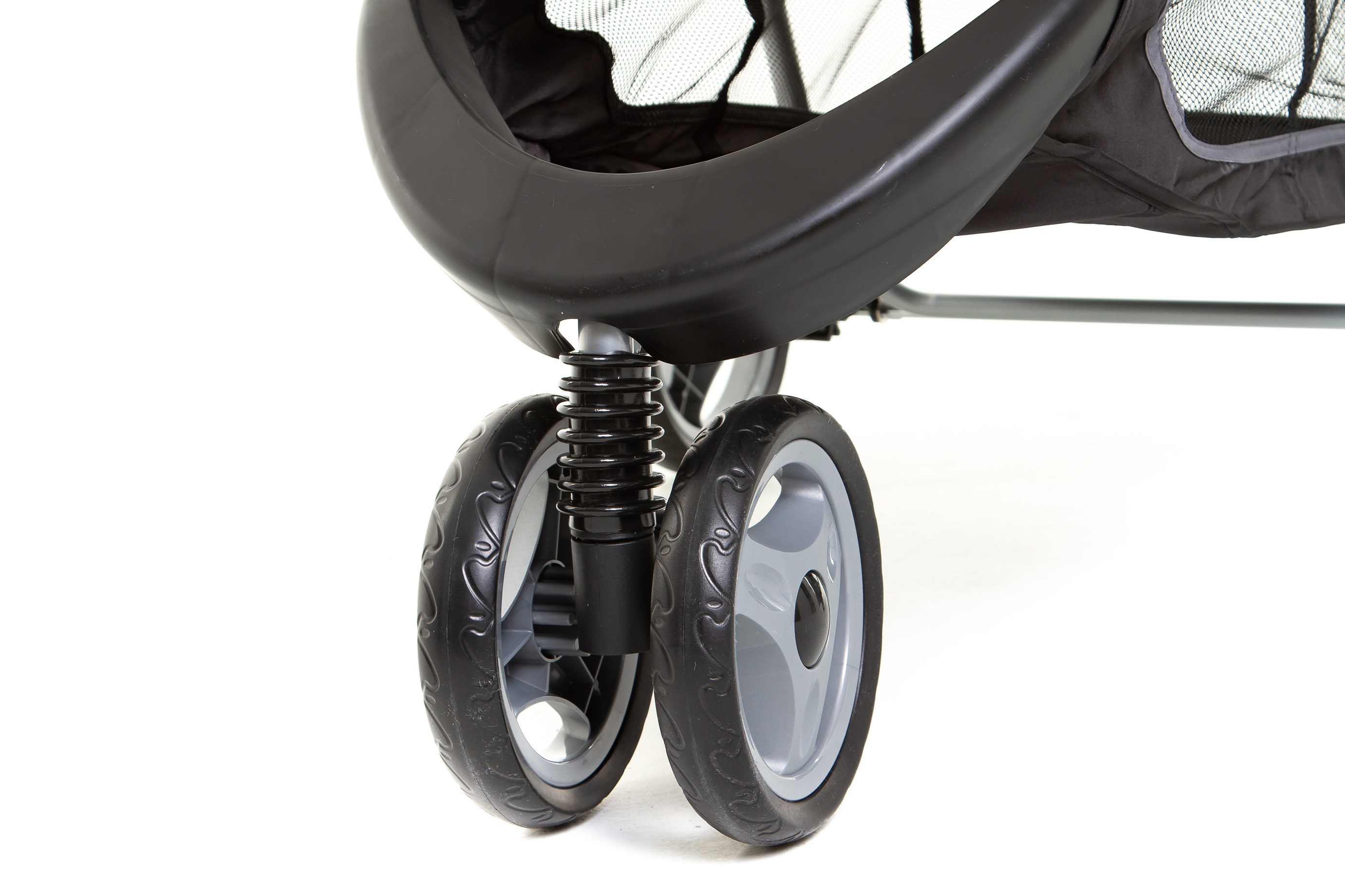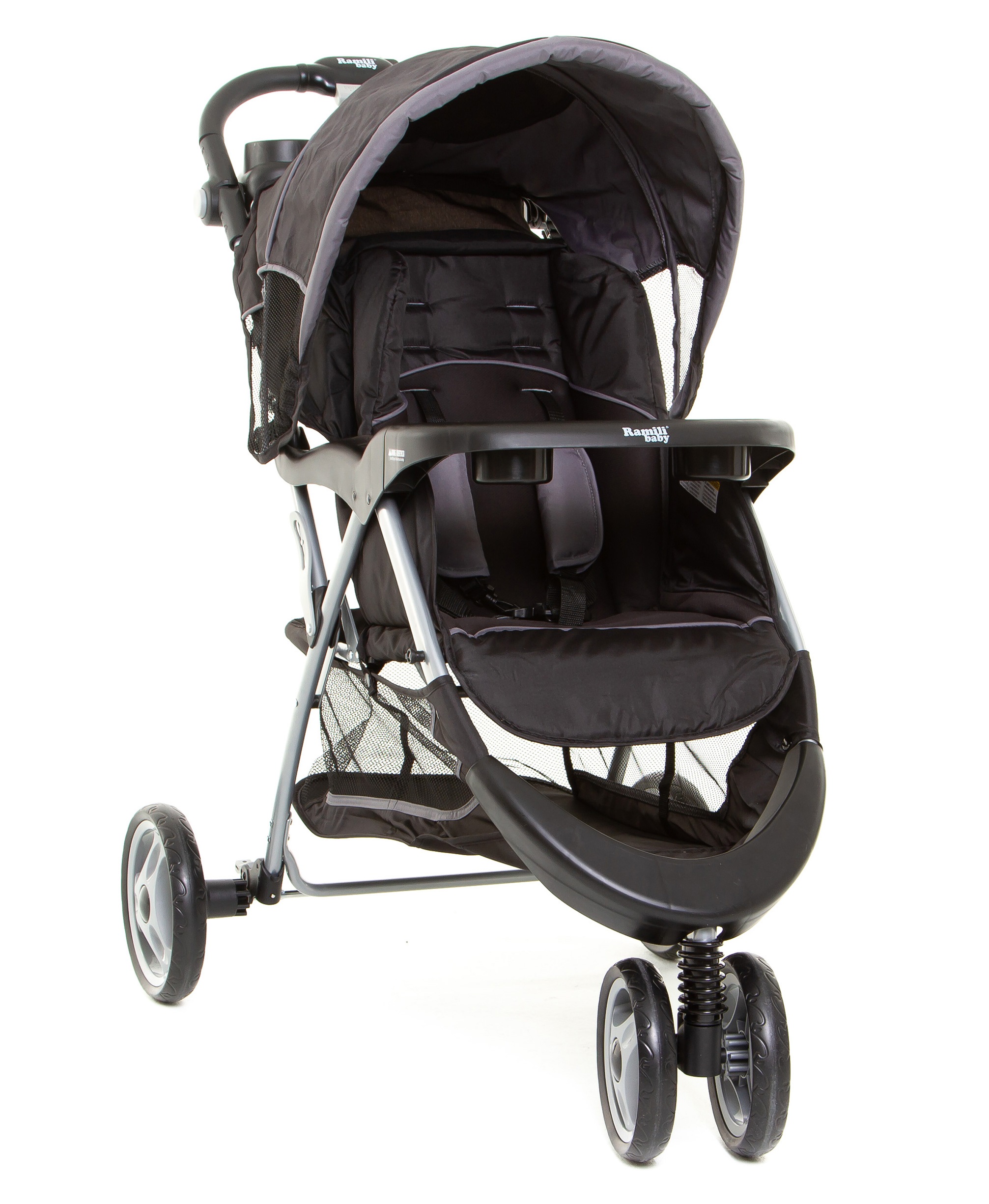 Прогулочная коляска Ramili Baby Rapid (рамили беби рапид) - трехколесная, недорогая коляска для ежедневных прогулок с ребенком. За счет передних сдвоенных колес коляска очень удобно управляется, отлично маневрирует и очень удобная в ограниченном пространстве. Просторное сидение имеет регулируемую спинку и подножку, что позволит ребенку удобно спать или сидеть в коляске. Спинка плавно регулируется до почти горизонтального положения с помощью ремешков. Перед ребенком расположен удобный бампер - столик, который обеспечит дополнительную безопасность и позволит играть во время прогулки.
