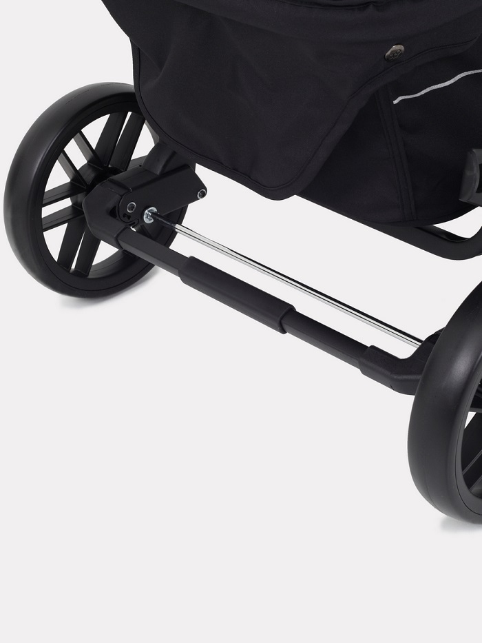 Коляска оснащена простыми, практичными полиуретановыми колесами. Они не сдуваются, не прокалываются и просты в обслуживании и использовании. Передние поворотные колеса позволят легко управлять коляской, а задние колеса обеспечат мягкий ход и хорошую проходимость.