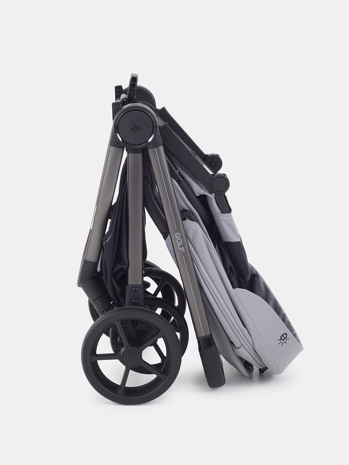 Коляска компактно складывается вместе с сидением и без него