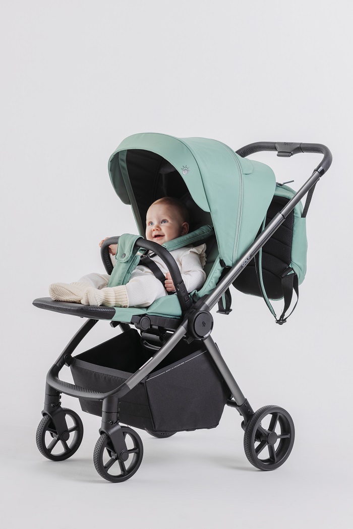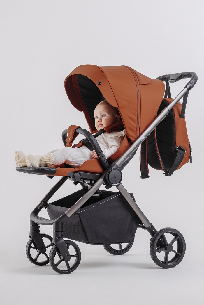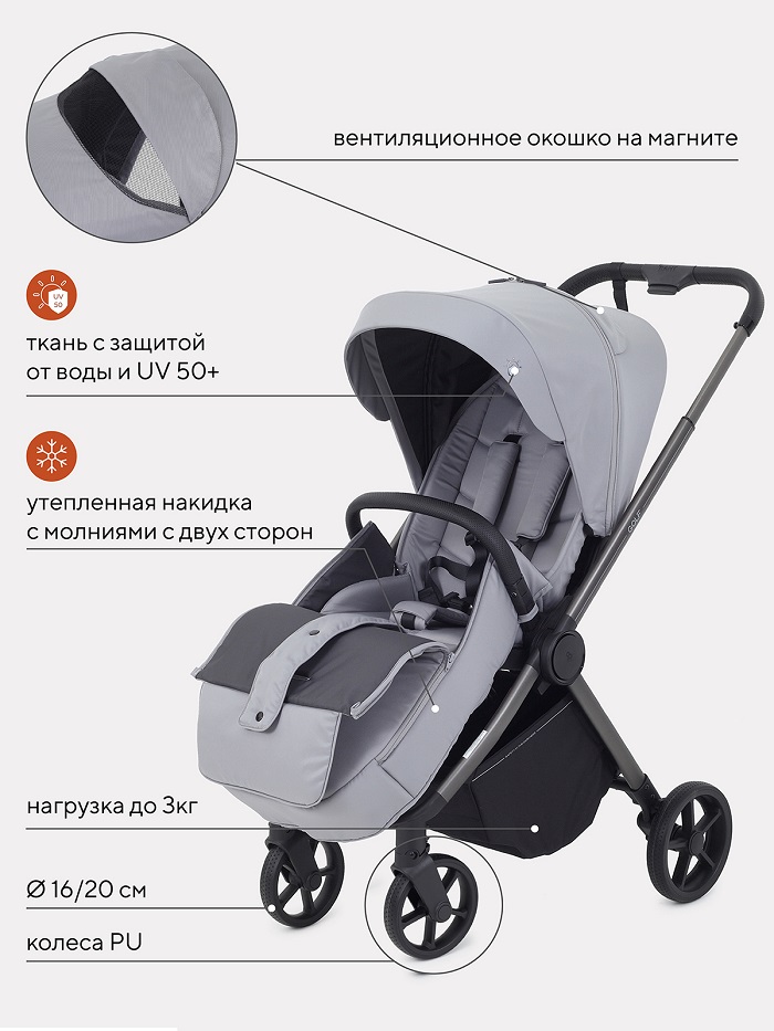 Обивка коляски выполнена из ткани со специальной пропиткой и с защитой от солнечных лучей UV50