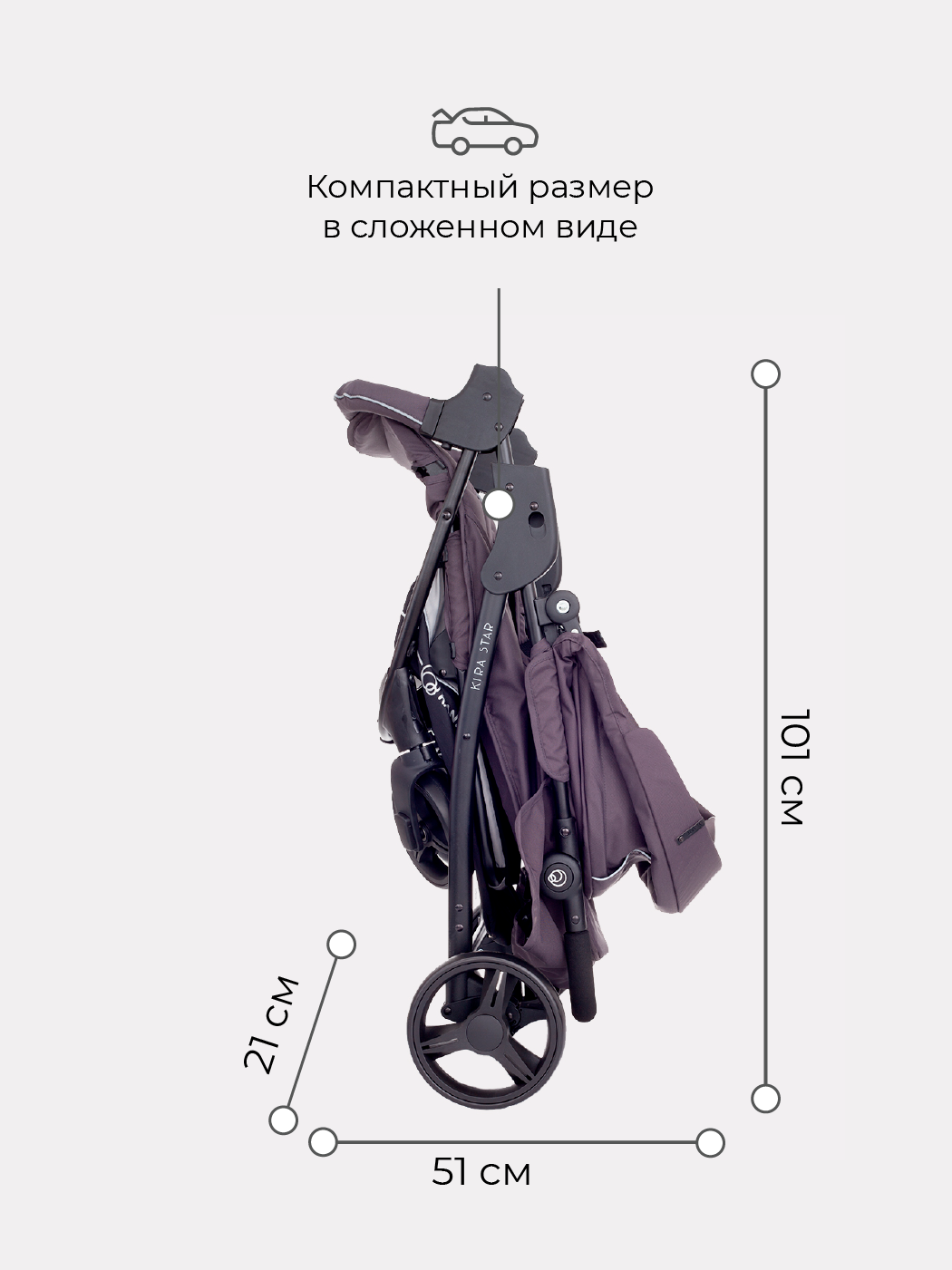 - Габариты коляски в сложенном виде в см (ДхШхВ): 21 x 51 x 101