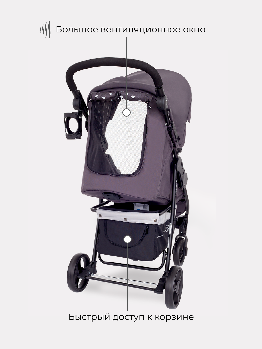 Сама коляска очень удобная и функциональная. Она легкая, с передними поворотными колесами, которые помогут при маневрировании коляской. Ручка у модели регулируется, что поможет удобно управлять коляской родителям любого роста. Компактное сложение позволит удобно хранить коляску или брать ее с собой в поездки. Корзина для покупок с удобным доступом.