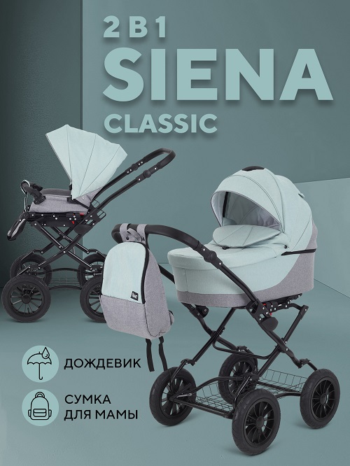 Коляска оснащена современными материалами, которые имеют влагозащиту, защиту от УФ лучей. Внешняя обивка коляски из ткани с утеплением, поэтому Siena Classic New отличный вариант для зимних прогулок.