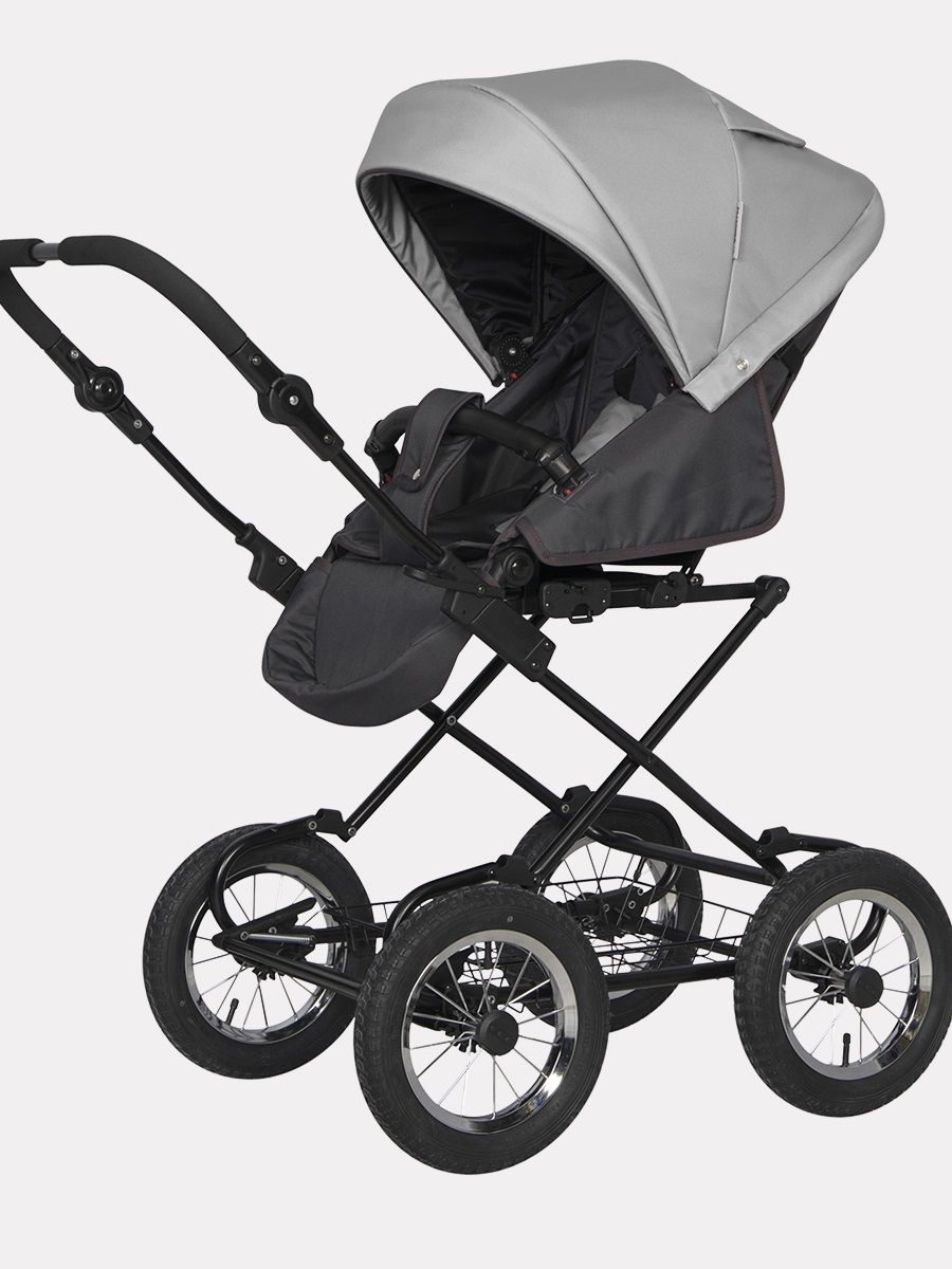 Алюминиевая рама с большими надувными колесами отлично подойдет для прогулок по бездорожью, для зимы и регионов с плохими дорогами. Под сидением размещена удобная металлическая корзина для покупок. В комплекте удобная сумка для мамы. Ручка для родителей из приятных материалов удобно регулируется по высоте.