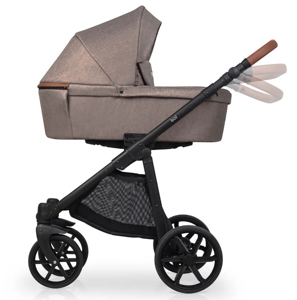 В комплекте с коляской идет удобная и практичная сумка с системой крепления на ручку коляски и теплый чехол на ножки, который обязатльно пригодится в холодное время года. Под коляской размещена вместительная тканевая корзина для вещей, покупок, игрушек.