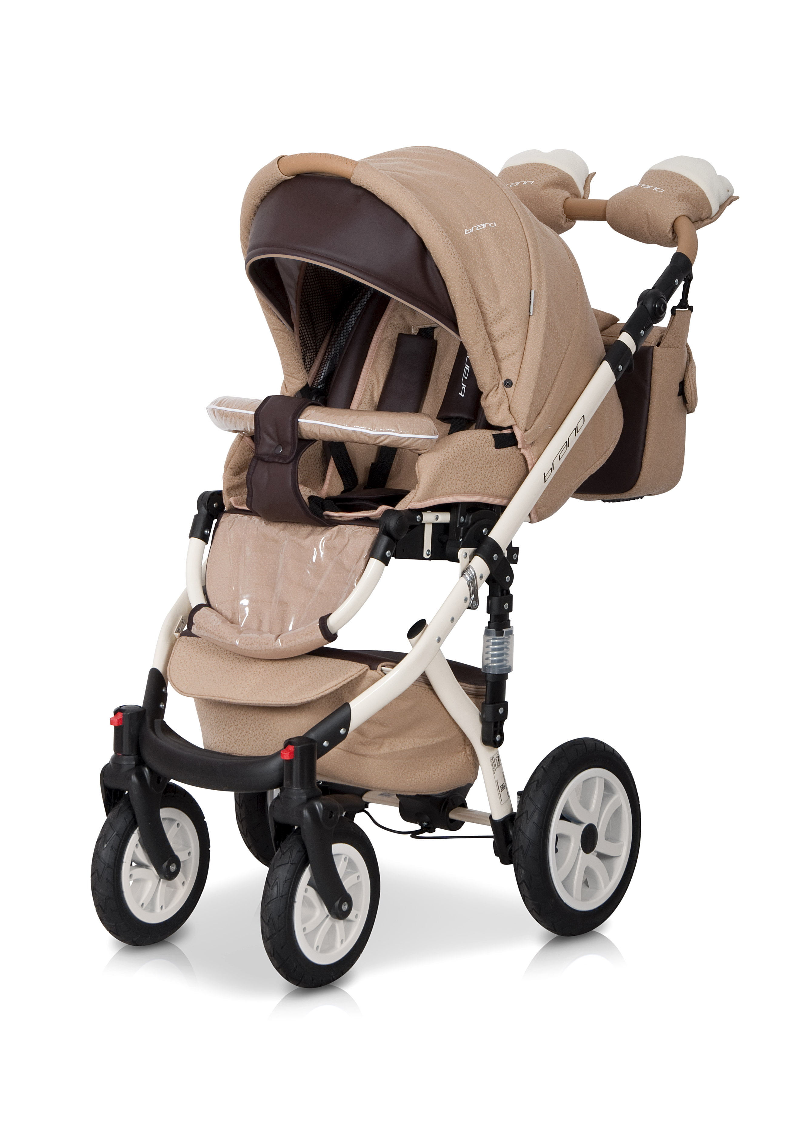Рама коляски выполнена из алюминия, что придает коляске надежность и легкость. Все колеса надувные с регулируемой амортизацией на задних колесах и раме. Такое сочетание амортизации позволит вам самим регулировать ход коляски, делая его жестче или мягче. Надувные колеса поглощают все неровности от дороги, делая ход коляски тихим и плавным, независимо от состояния дорог.