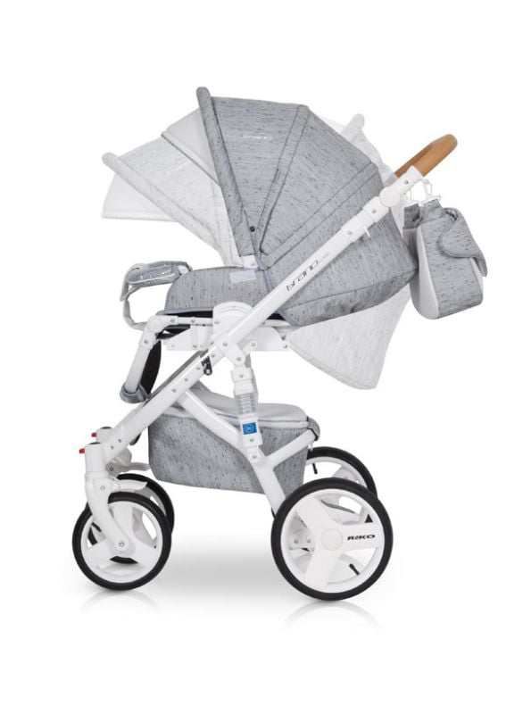 Детская коляска Riko Bruno Luxe (Рико Бруно Люкс) - стильная дизайнерская коляска для ребенка с рождения до 3 лет. Просторная пластиковая люлька с жестким дном идеальна для первых прогулок с ребенком. Верхняя часть из водонепроницаемой ткани имитирующей лен, что обеспечит экологичность, комфорт и долговечность модели. Непродуваемые борта надежно защитят от ветра. Регулируемый по высоте подголовник. Удобная ручка, расположенная на капюшоне для переноски, обтянута кожей. Бесшумный механизм регулировки капюшона. Капюшон с открывающейся на молнии секцией, со встроенной москитной сеткой для вентиляции. Высокий отворот на накидке на люльку защитит новорожденного от непогоды. Внутренняя вкладка выполнена из 100% хлопка, легко снимается для стирки.