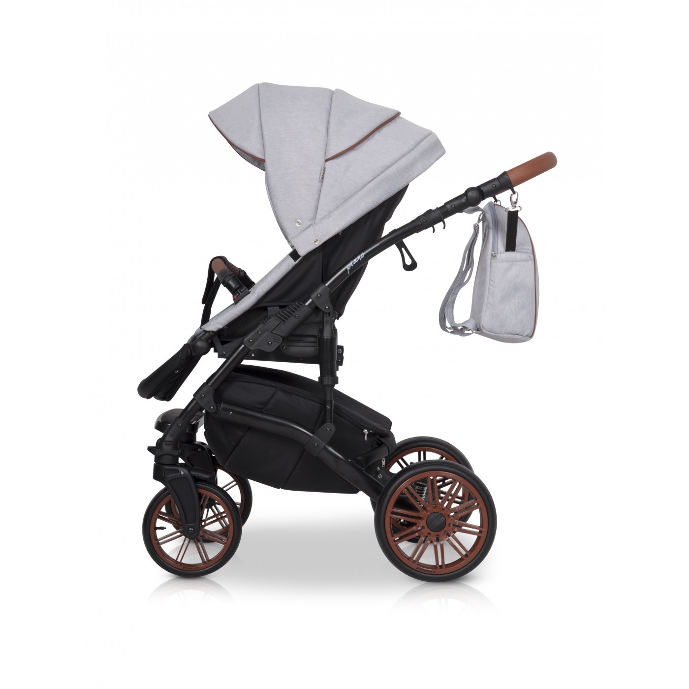 Детская коляска Riko Piano 2 в 1 (Рико пиано) - красивая и функциональная коляска для ребенка с рождения до 3-4 лет. Модель отличается красивой геометрией рамы, мягкими округлыми формами люльки с большим капюшоном, необычным дизайном колесных дисков. Обивка коляски выполнена из плотной качественной ткани под лен с водоотталкивающей пропиткой и вставками из эко кожи. Весь внутренний текстиль приятен на ощупь, гипоаллергенный, и не вызывает дискомфорта при контакте с кожей новорожденного.