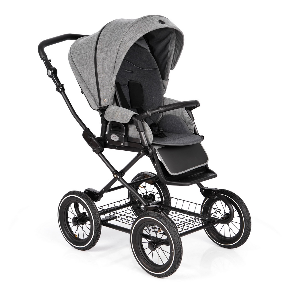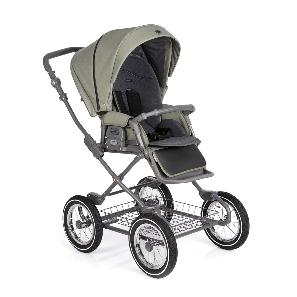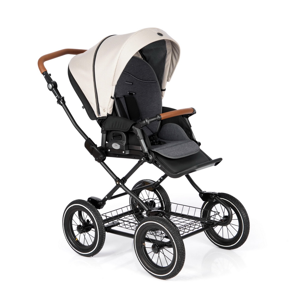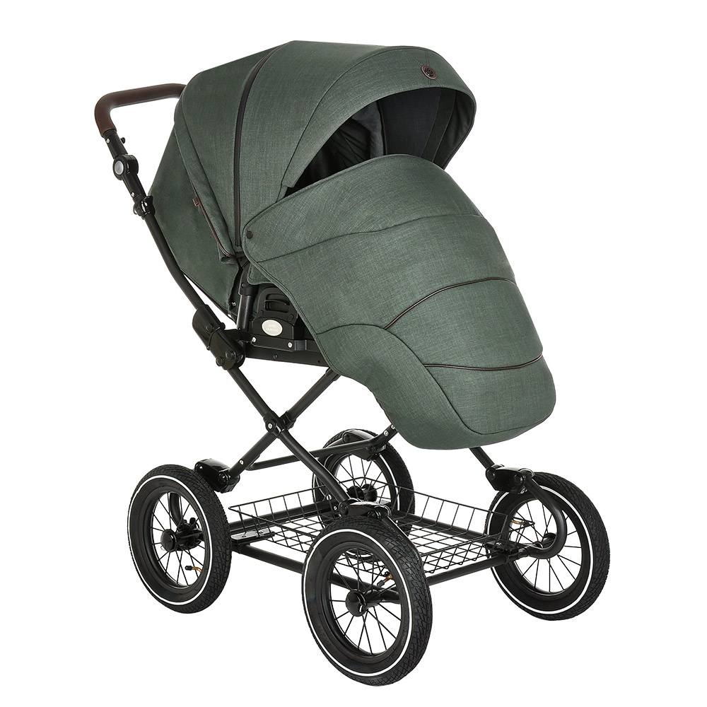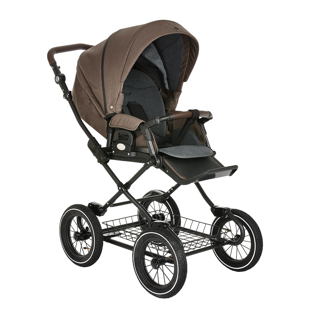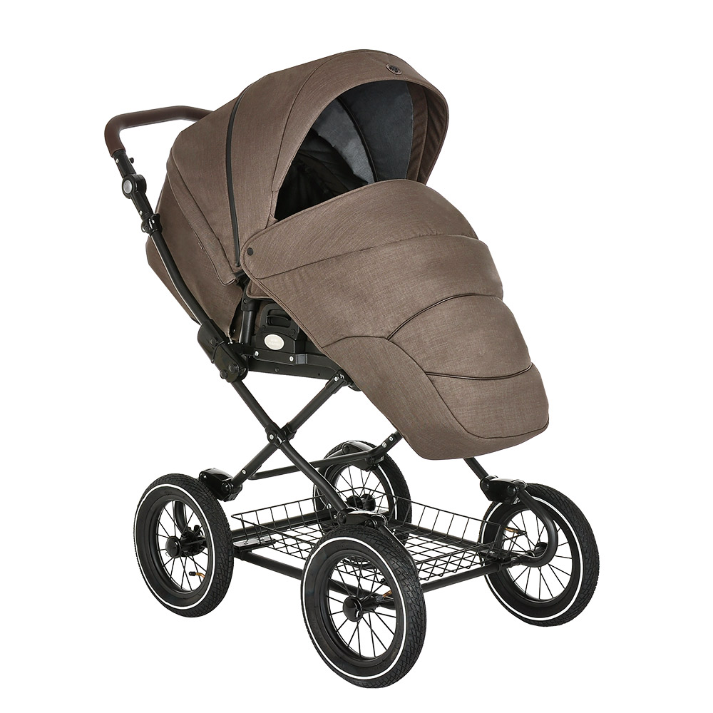 Классическая рама с надувными колесами подарит вам плавный и тихий ход. Главное достоинство такой рамы, что при движении по труднопроходимой местности колеса не вибрируют, коляска движется очень легко, а идеальная амортизация, основанная на кулисах, закрепленных в четырех точках, обеспечивает хороший сон для ребенка.