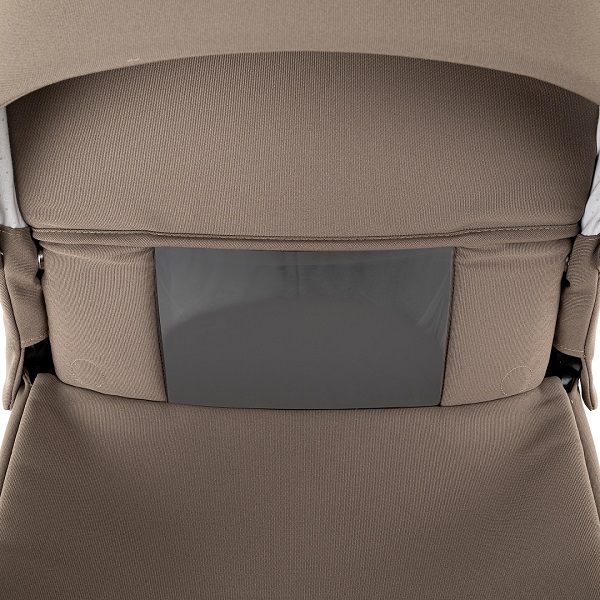- Прогулочный блок имеет отдельный функциональный капор, который можно снять. В капоре есть отсек с антимоскитной сеткой и дополнительный отсек для увеличения покрытия, также есть дополнительный козырёк.