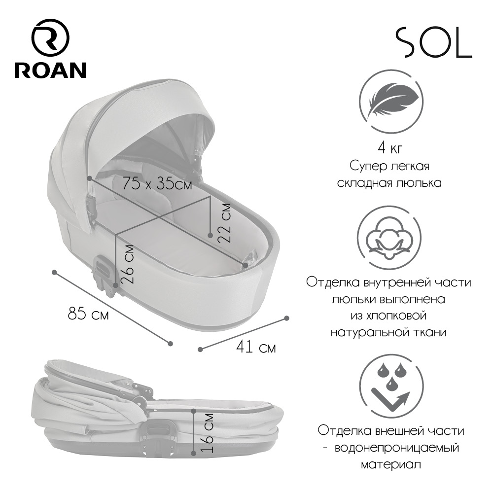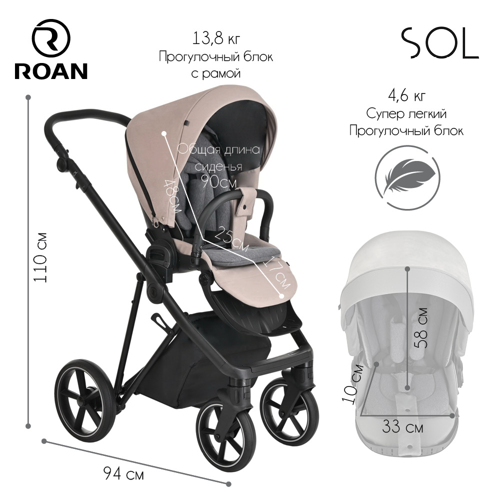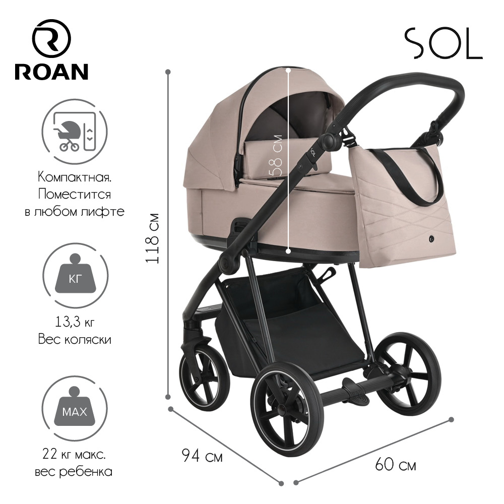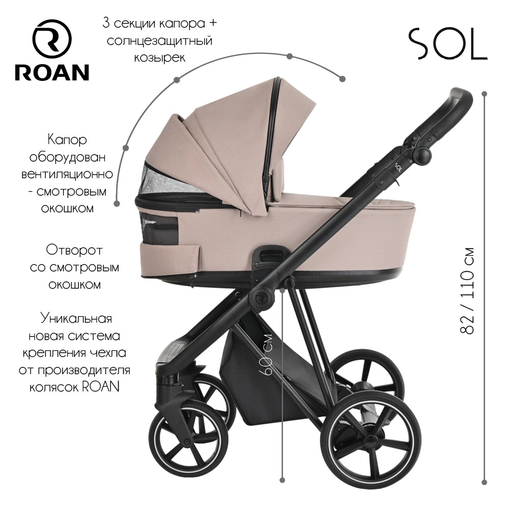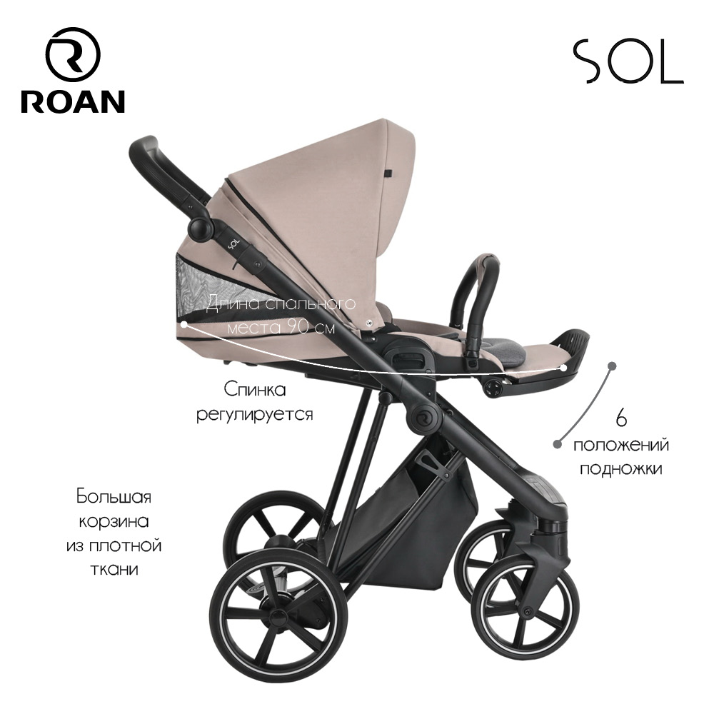 Коляска ROAN SOL 2 в 1 (Роан сол) - надежная, функциональная и качественная коляска для ребенка с рождения до 3 лет. Коляска высокого качества представлена в идеальном исполнении, которое заметно с первого взгляда.