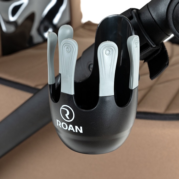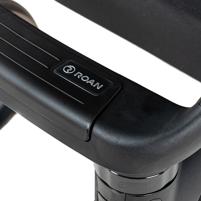 Рама в коляске изготовлена из алюминия, с нанесением профессионального покрытия и укреплённого в печи под температурой, что гарантирует стойкость покрытия и защиту от внешний воздействий на раму. В конструкции рамы производитель Roan применяет собственные разработки деталей (узлов), например, тормозная система, механизм крепления люльки, механизм складывания и др. Это отличает данного производителя колясок от других фирм, которые используют универсальные узлы во всех колясках разных моделей. Конструкция рамы имеет амортизатор, специально разработанный для данной модели коляски, который компенсирует неровности дорожного покрытия и делает ход коляски плавным.