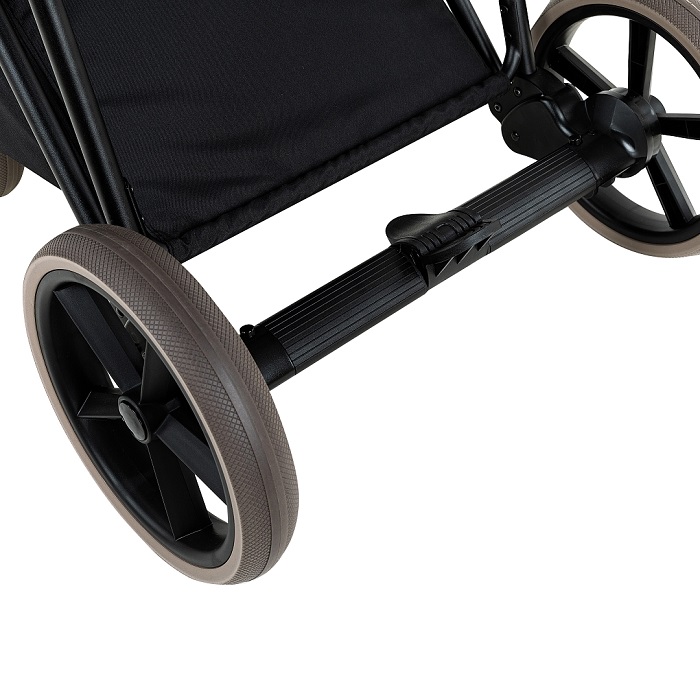 Колеса в коляске ненадувные из специального вспененного геля (гелевые). Такое колесо невозможно пробить, не требует подкачек, а ход его очень мягкий. Гелевое колесо хорошо зарекомендовало себя как в жару, так и в холод. В каждом колесе установлен двойной подшипник, что делает ход коляски беззвучным.