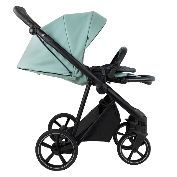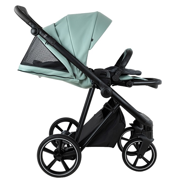 Большая полноразмерная, бескаркасная люлька, предусмотрена глубокая система вентиляции нового поколения «double Air». Отделка внутренней части люльки выполнена из хлопковой натуральной ткани, имеется дополнительный бортик для использования коляски в зимний период. Большой глубокий капор и регулировка капюшона.