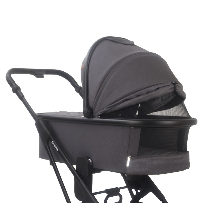 Современный прогулочный блок коляски ELETTA, как и люлька, может устанавливаться по направлению к родителям (удобно до года) и по направлению к окружающему миру. В прогулочном блоке малыша ждем прекрасный обзор, более интересные и увлекательные прогулки. Настройка высоты спинки и подножки (по глубине и высоте) позволит во время прогулки комфортно сидеть, отдыхать и даже спать с полностью горизонтальным наклоном спинки. Капюшон коляски может подниматься по высоте, увеличивая высоту спинки и комфорт для уже подросшего ребенка. Капюшон в коляске большой и глубокий, при вертикальной спинке капюшон закрывает ребенка до бампера. Теплая накидка на ножки защитит от непогоды и создаст приятную атмосферу внутри коляски. За счет вентиляционной спинки прогулочный блок очень легкий и складывается очень компактно как с рамой коляски, так и отдельно.