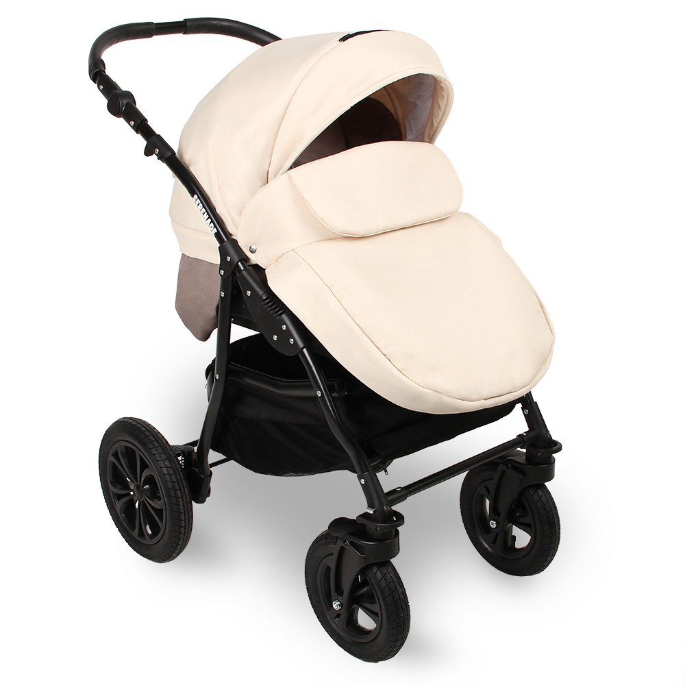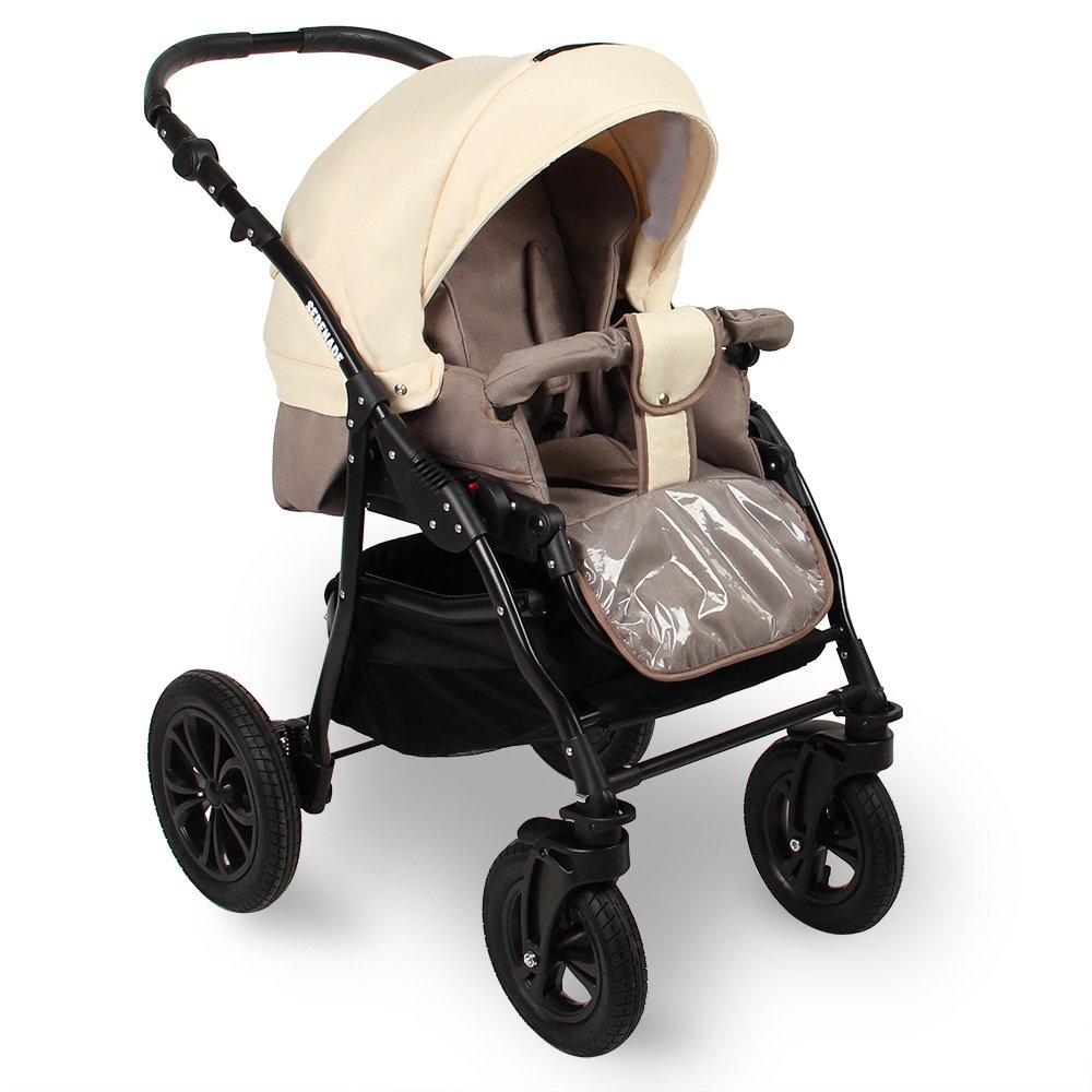 Модель имеет компактные размеры и удобное шасси с большими надувными колесами. Все колеса оснащены амортизацией, что позволит с легкостью преодолевать любые препятствия на своем пути, мягко ездить по любому бездорожью. Под коляской размещена вместительная корзина для игрушек и покупок. Большая комплектация позволит гулять в любую погоду и не докупать к коляске ни чего лишнего.