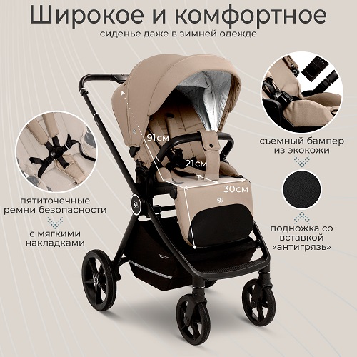 Эта коляска не просто средство передвижения, а настоящая находка для родителей, которые хотят обеспечить своему ребенку максимально комфортные условия с первых дней жизни. Подходит для малышей с осенне-зимним рождением и дарит спокойствие и уют до трехлетнего возраста.