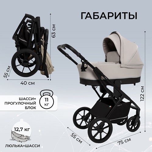 Коляска 2в1 будет включать в себя люльку для новорожденного и стильный прогулочный блок для ребенка от 6 месяцев до 3-4 лет.