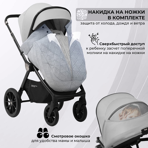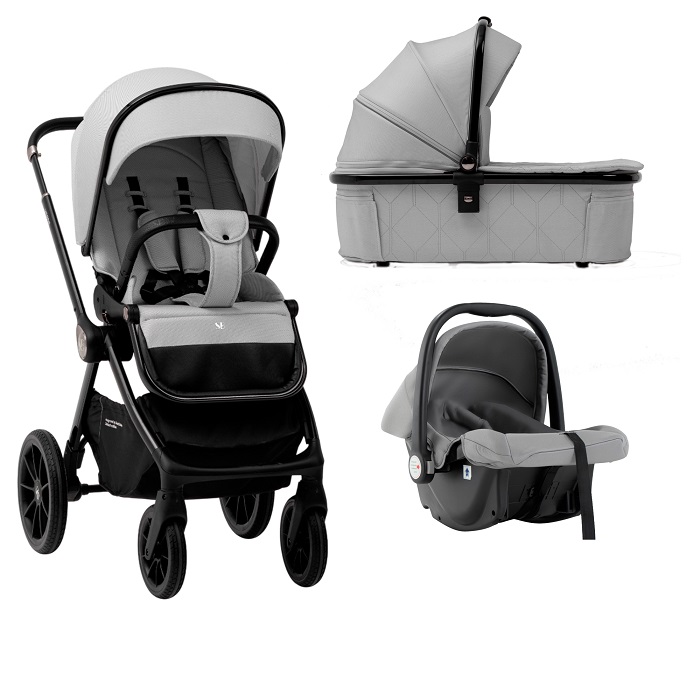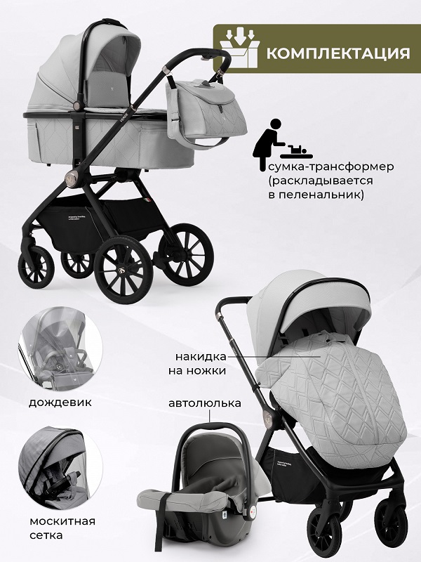 Коляска представлена в комплектации 3в1: люлька для новорожденного, прогулочный блок, автокресло. Каждый блок легко сменяется на другой, в зависимости от возраста ребенка.