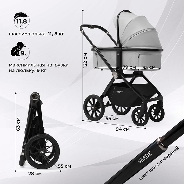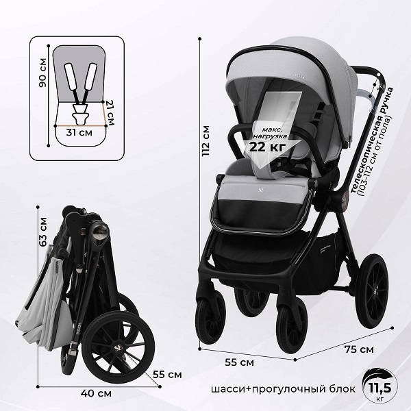 - Вес коляски (с прогулочным блоком): 11,5 кг