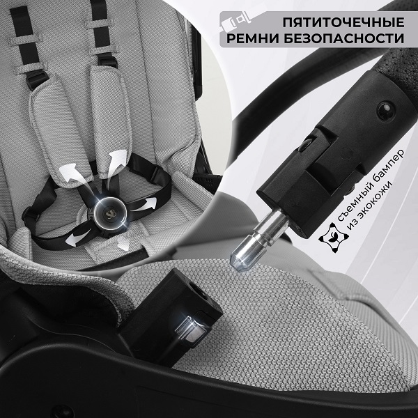 - Съемный поворотный бампер из экокожи с легким доступом к ребенку.