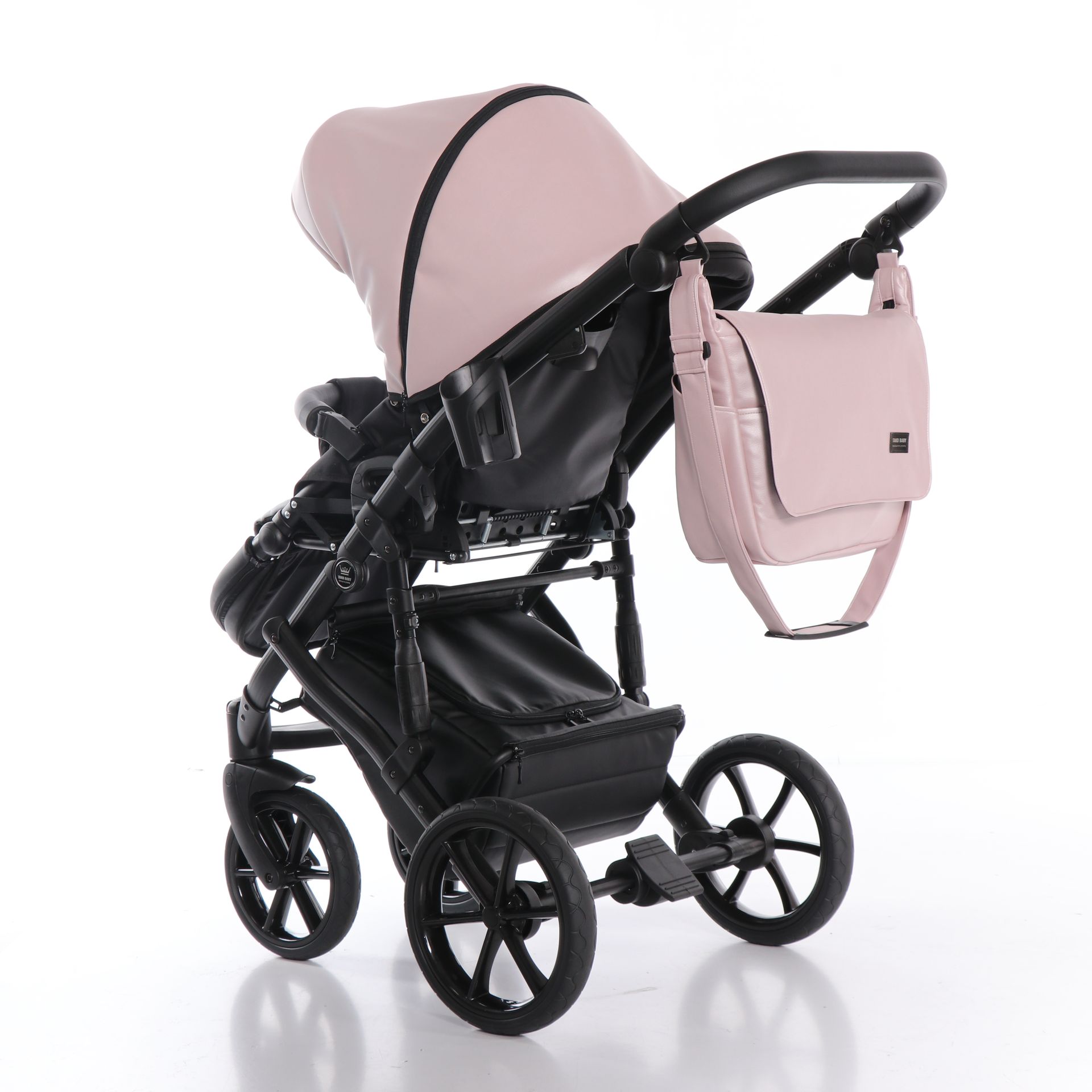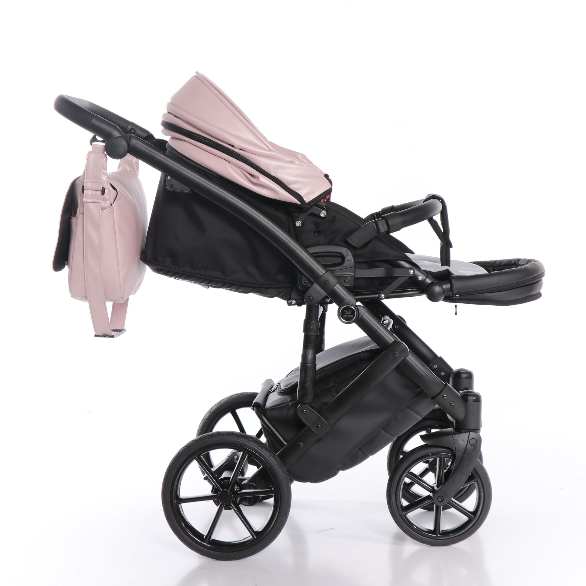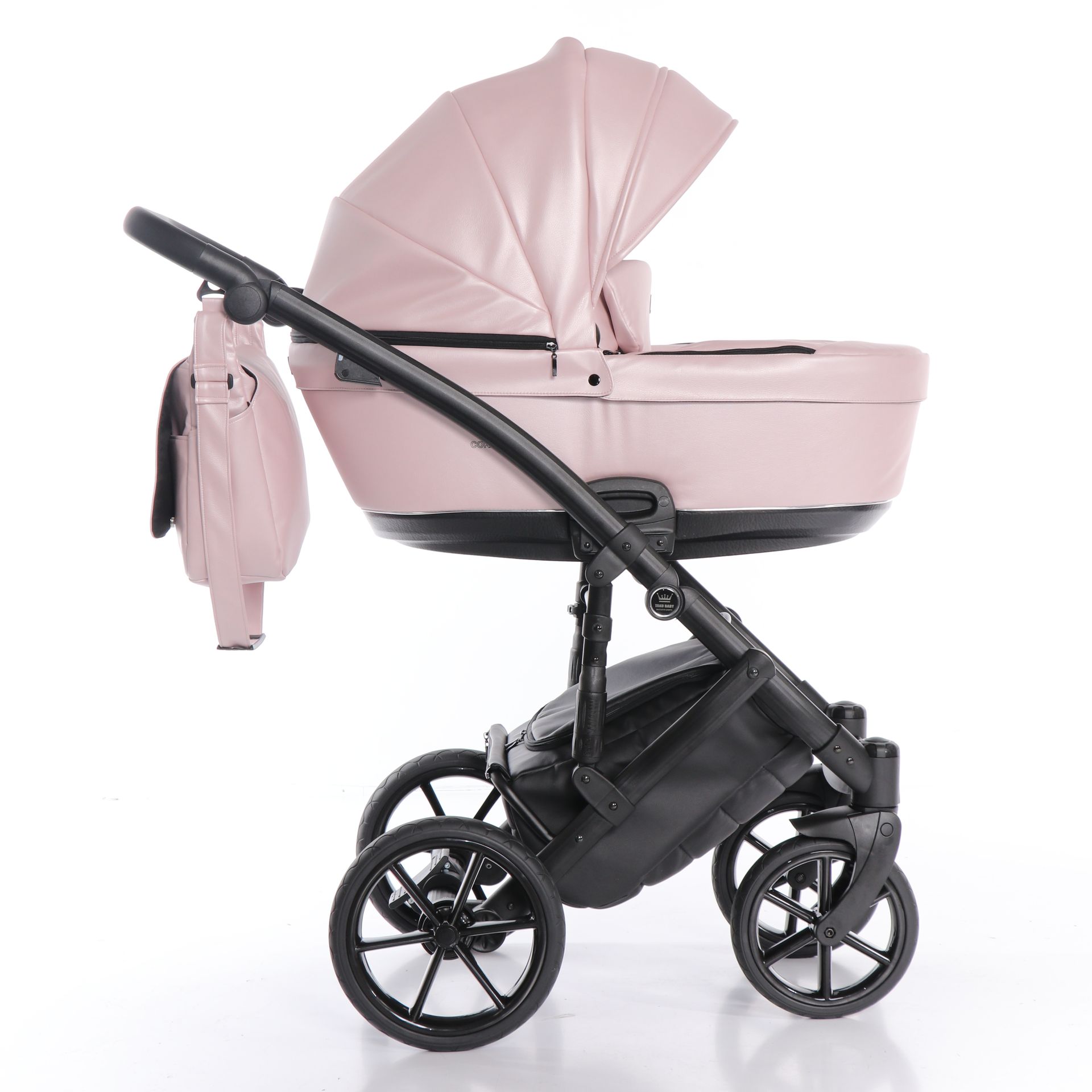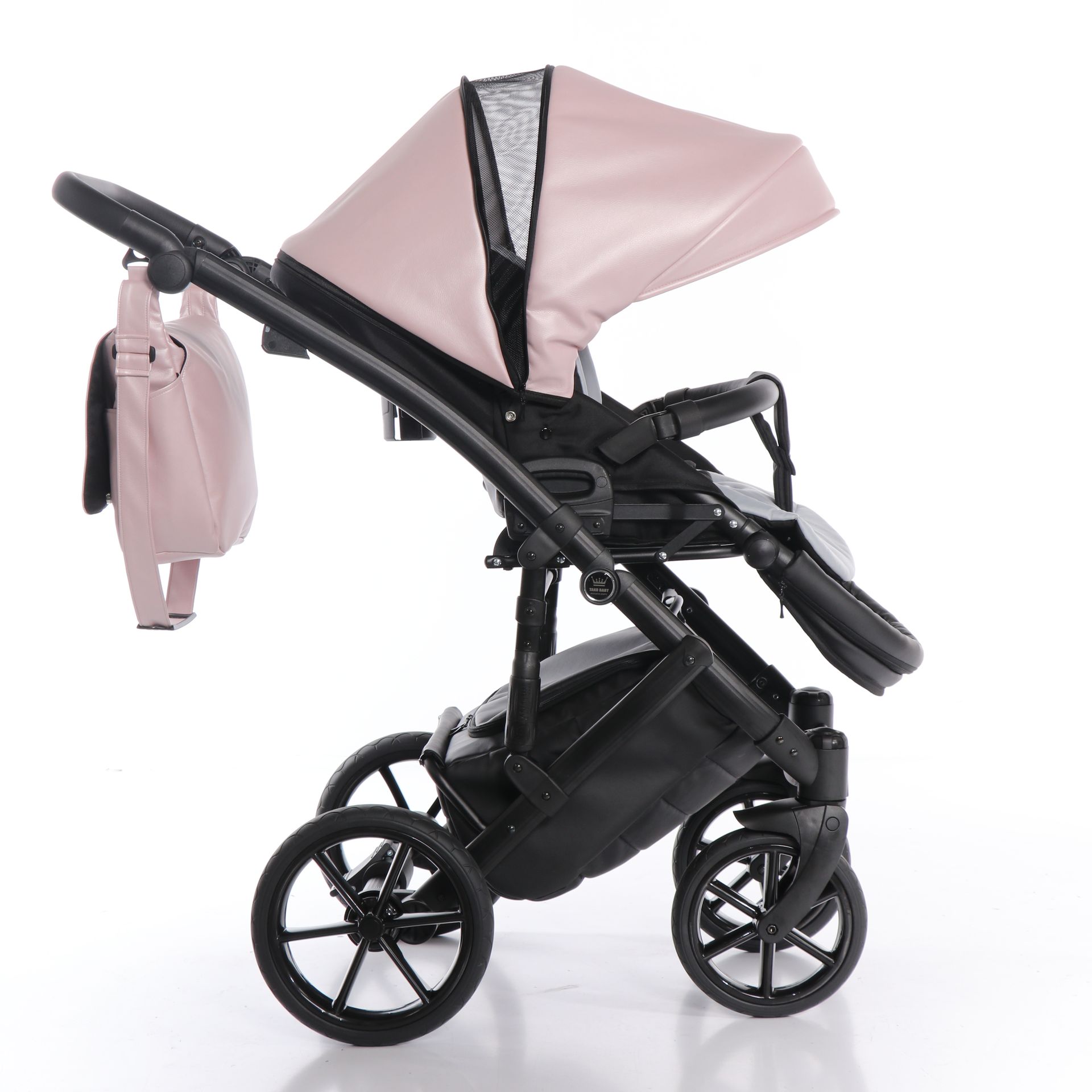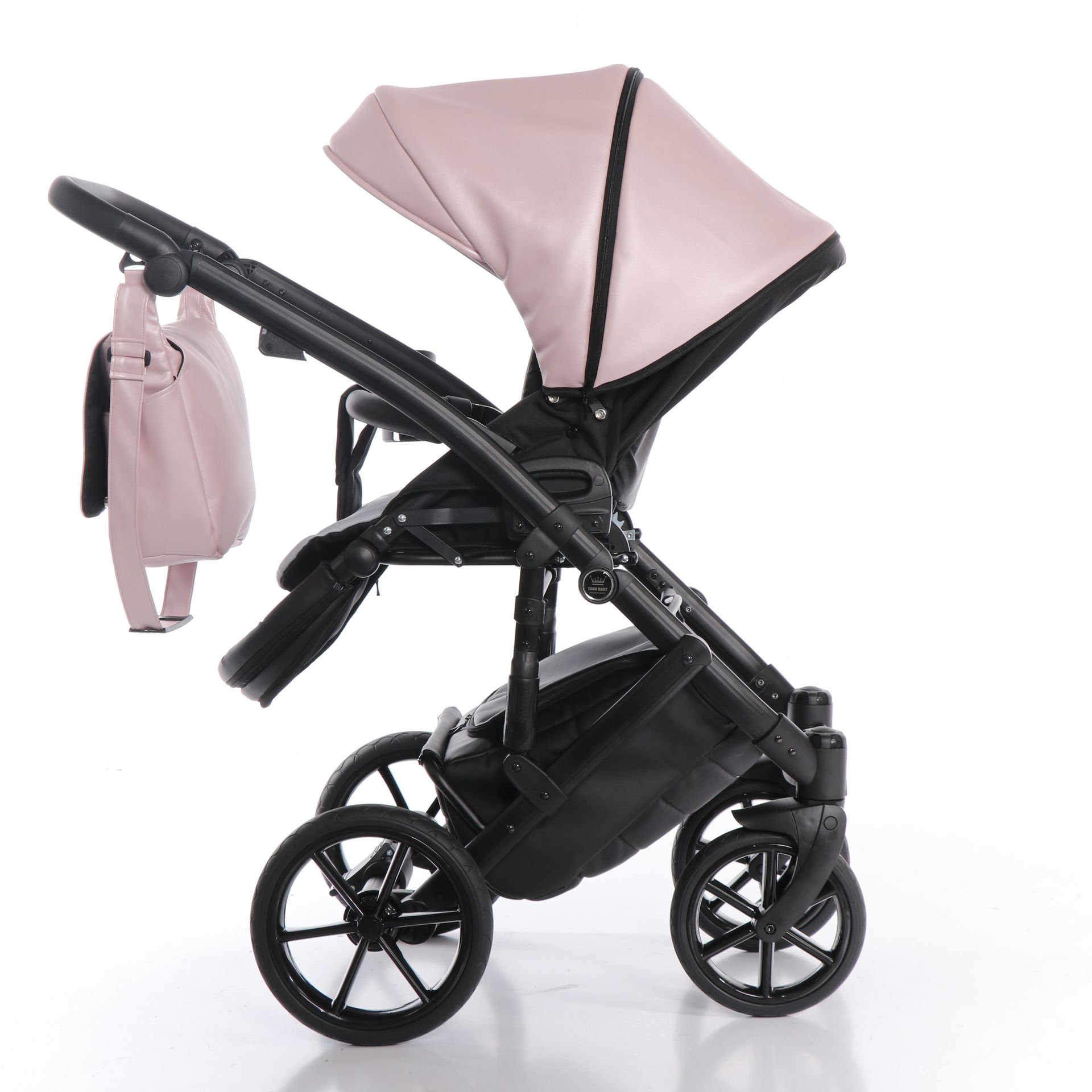 Легкая компактная рама снабжена большими гелевыми колесами. Они долговечные, мягкие как надувные, но не прокалываются и не требуют дополнительного ухода. Все колеса легко снимаются при необходимости, что позволит более компактно хранить коляску или легко помыть колеса после прогулки. 6 амортизаторов на колесах и раме обеспечат мягкий плавный ход, а регулировка подвески поможет подстроить ход коляски в зависимости от ваших пожеланий. Амортизаторы надежно закрыты от грязи и пыли. Большая багажная корзина полностью закрывается на молнии. А для удобства мамы в комплекте есть элегантная сумка которую можно нести на плече или зафиксировать на ручке коляски.