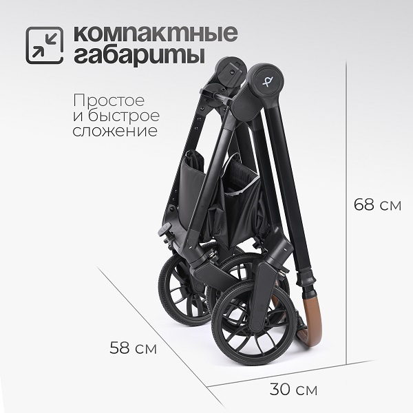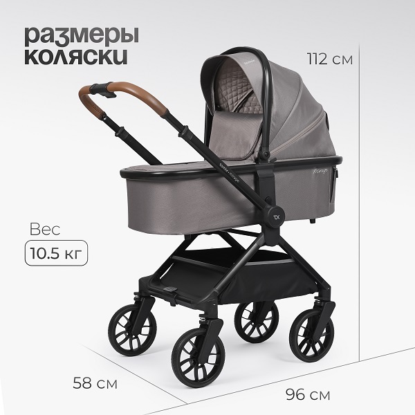 - Габариты коляски: высота 112 см, ширина 58 см, глубина 96 см