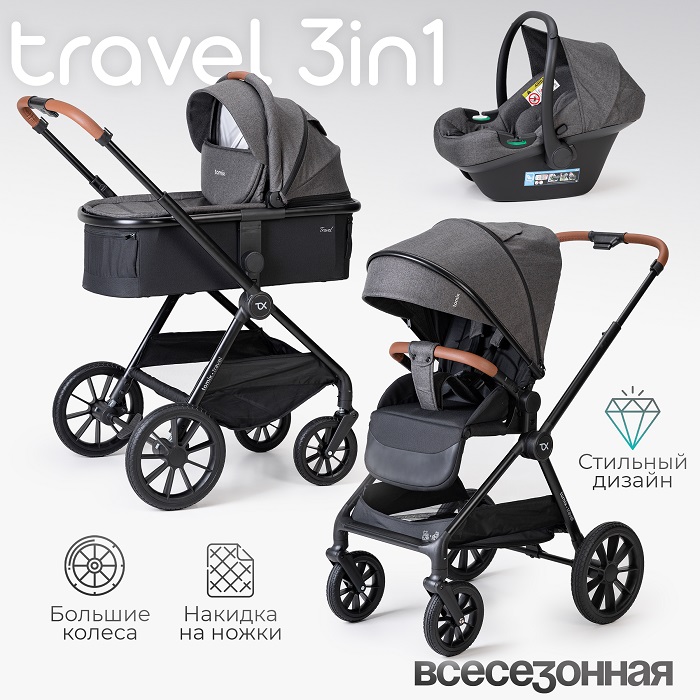 Детская коляска Tomix Travel 3в1 (томикс тревел) - новинка 2025 года. Стильная, функциональная коляска для новорожденного с небольшим весом и компактным сложением. Прекрасный всесезонный транспорт для города и не только. Полная комплектация 3в1 позволит комфортно гулять с ребенком с рождения до 4 лет и безопасно перевозить ребенка в машине с рождения до годика.