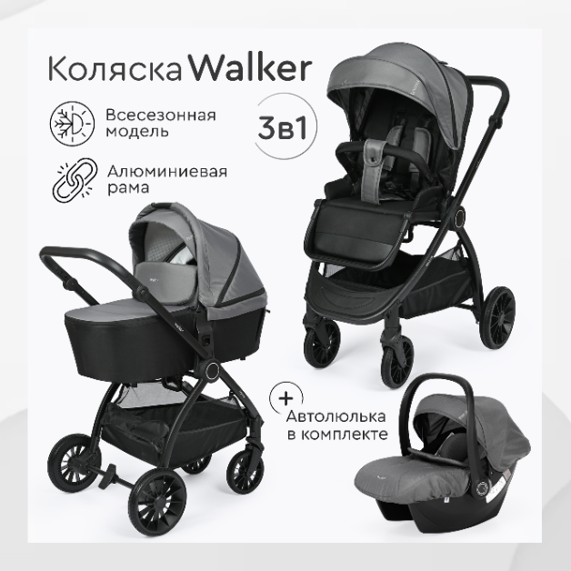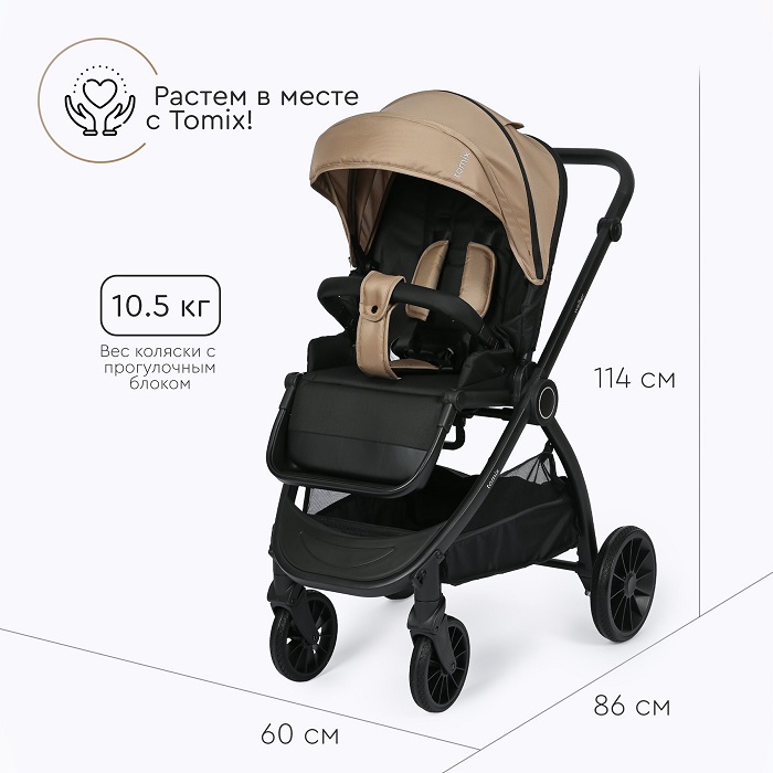 Детская коляска Tomix Walker 3в1 (Томикс волкер) - легкая, маневренная коляска по приятной цене с большой комплектацией для ребенка с рождения до 3 лет.
