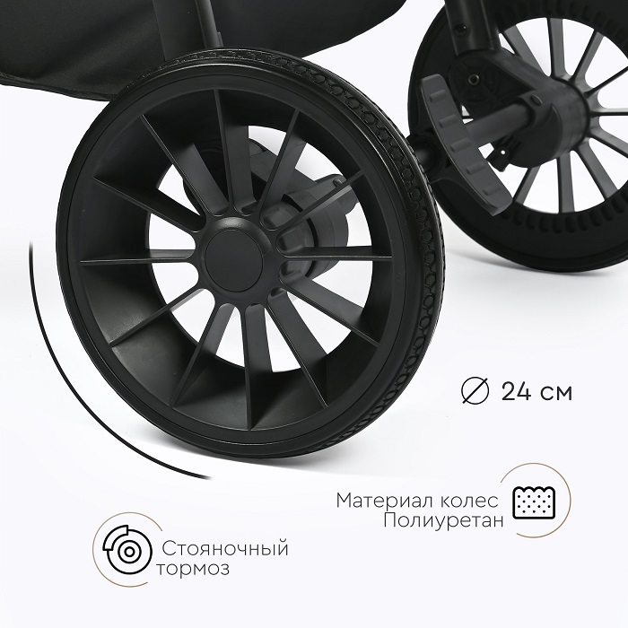 - Колеса выполнены из PU материала, диаметр - 18 см (передние) и 24 см (задние).