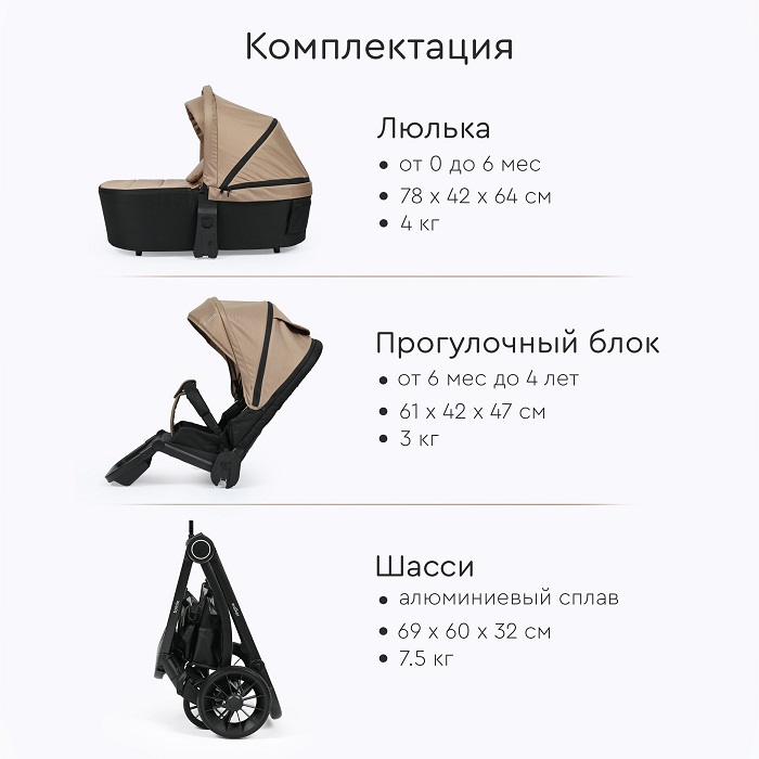 - Габариты коляски с прогулочным блоком (ВхШхГ), см: 114 х 60 х 86