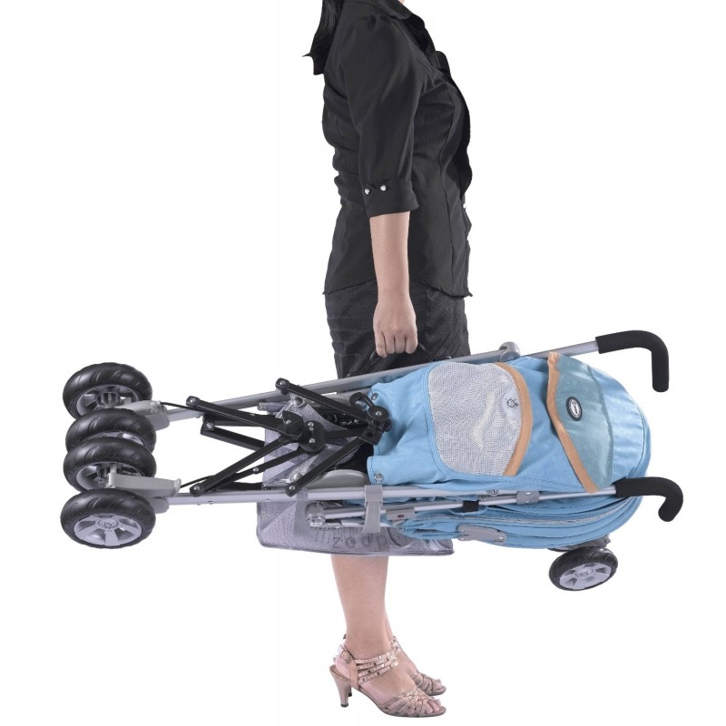 Механизм для складывания устроен таким образом, что сложить коляску можно одной рукой. Страховочный зажим прочно удерживает коляску в сложенном состоянии. Ручка для переноски расположена с одной из боковых частей, при этом правильная балансировка веса дает возможность нести трость в горизонтальном положении одной рукой. Для мамы на одной из ручек расположен подстаканник, на другой сумочка для мелочей. Удобно гулять, приятно путешествовать с коляской от Zooper.