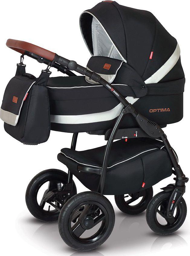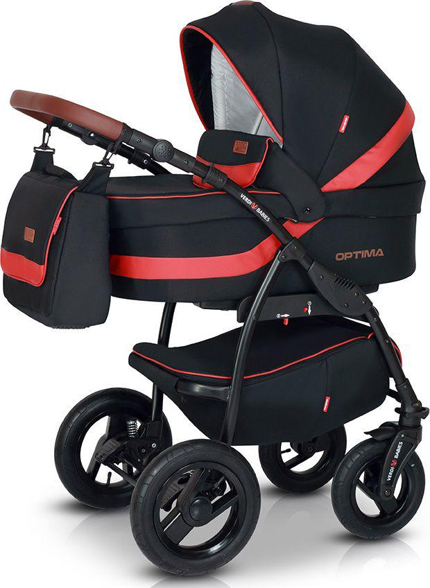 Детская коляска Verdi Optima Limited (Верди оптима лимитед) - Это надёжная многофункциональная коляска с дополнительной амортизацией и полным набором всех необходимых регулировок и функций для комфортных прогулок в любое время года. Очень прочная и легкая рама. Большая корзинка для покупок, закрываемая на застежку-молнию. Большие накачиваемые, подшипниковые колеса.