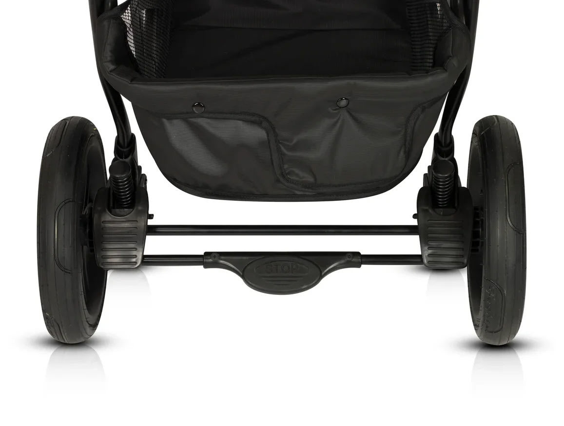 Модель состоит из надежной рамы из алюминия и надувных колес. Все колеса оснащены подшипниками и амортизацией, что делает ход коляски плавным, мягким и тихим. Коляска легко управляется, удобно маневрирует и заезжает на бордюры. Для удобства родителей ручка регулируется по высоте.