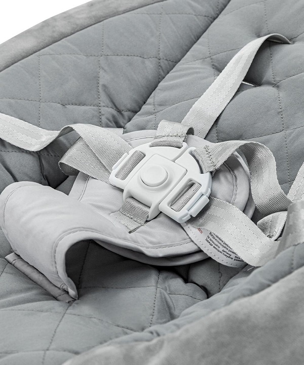 - Широкое сиденье обеспечивает удобное и безопасное положение ребенка. Качалка имеет 5-точечные ремни безопасности.